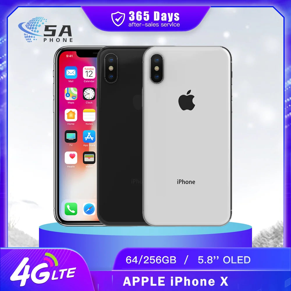 Original Unlocked iPhone X 4G Mobile Phone FACE ID 3GB RAM 64GB/256GB ROM OLED 5.8" 12MP+7MP A11 Bionic Hexa Core IOS SmartPhone