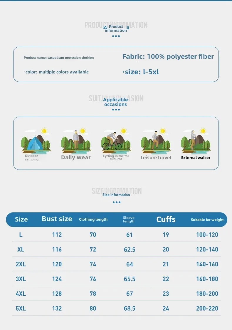 • Lightweight Summer Design : Crafted for summer comfort, this sun protection clothing features a thin, breathable fabric that keeps you cool during outdoor activities.