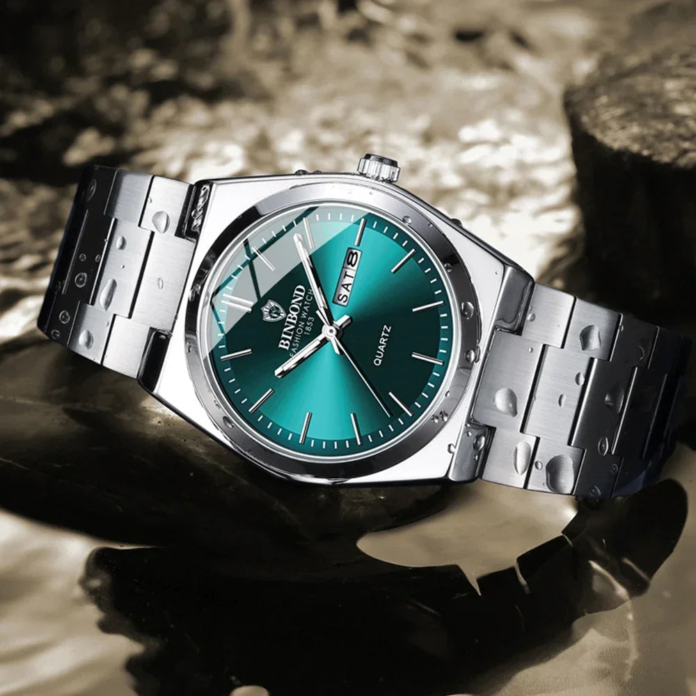 YIKAZE Men's Watch Light Luxury Men Quartz Wristwatch Stainless Steel Week Dual Calendar Waterproof Business Male Watch Gift