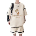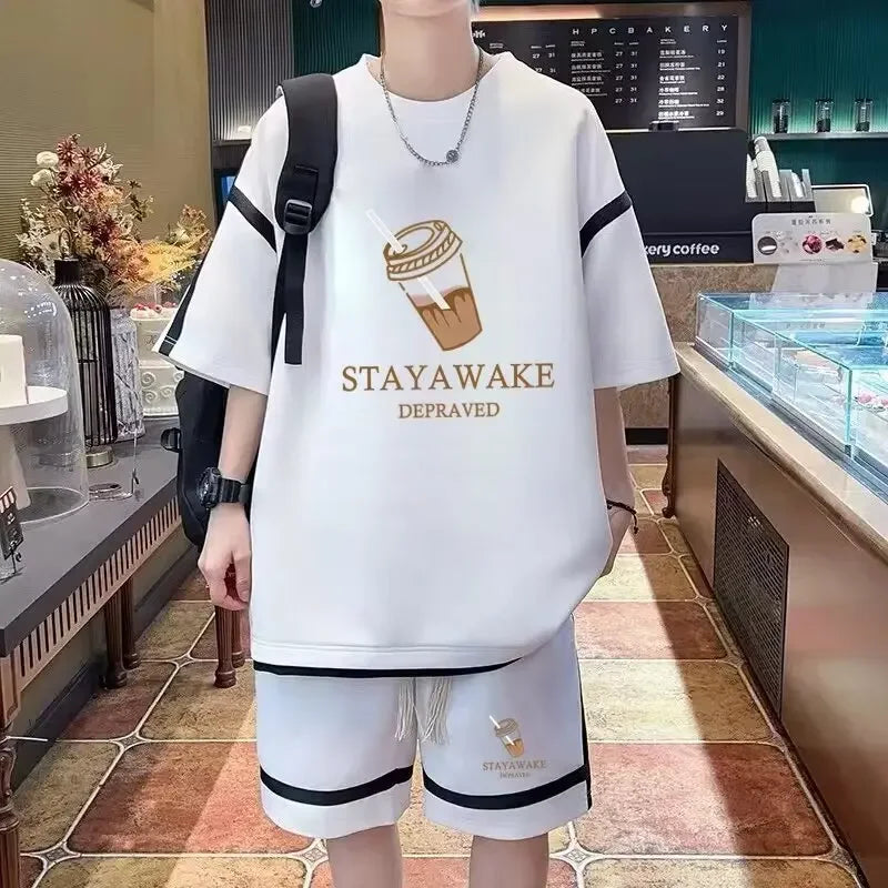 Casual Sportswear Set For Men Summer Preppy Styles Short Sleeves Trendy Brand Clothing 2-Piece Set Youth Shorts