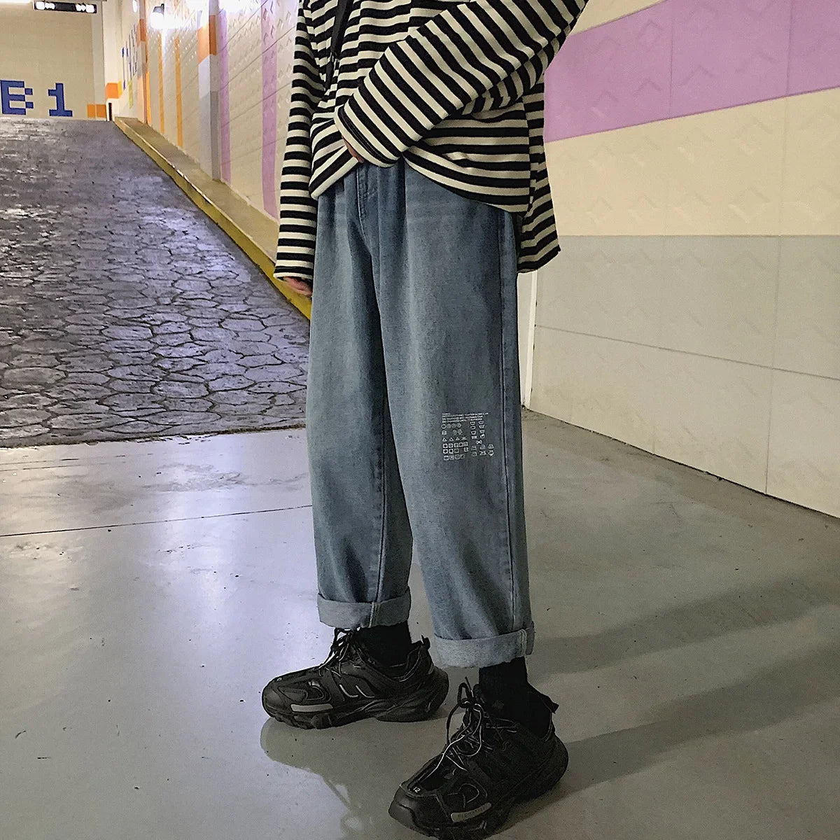 Korean-Style Men's Jeans Straight-Leg Pants Loose-Fit Cropped Pants Trendy Harajuku Style Casual Denim Pants