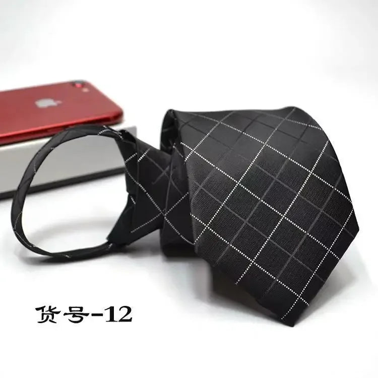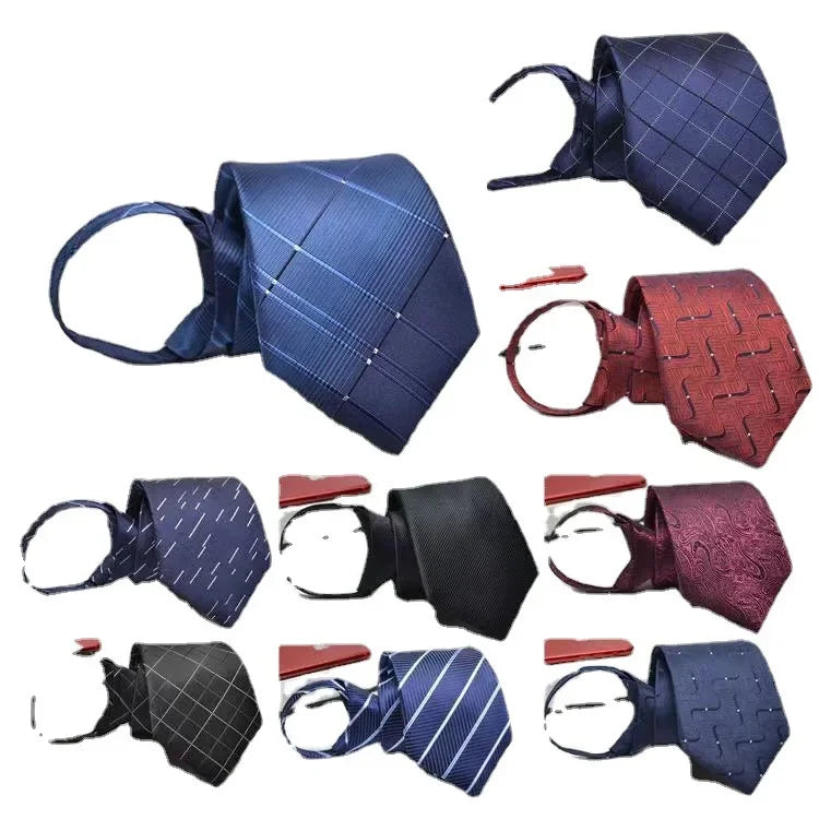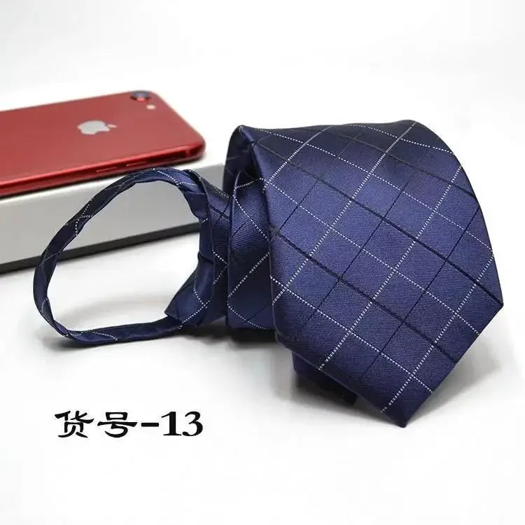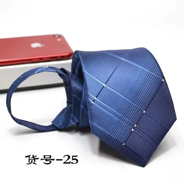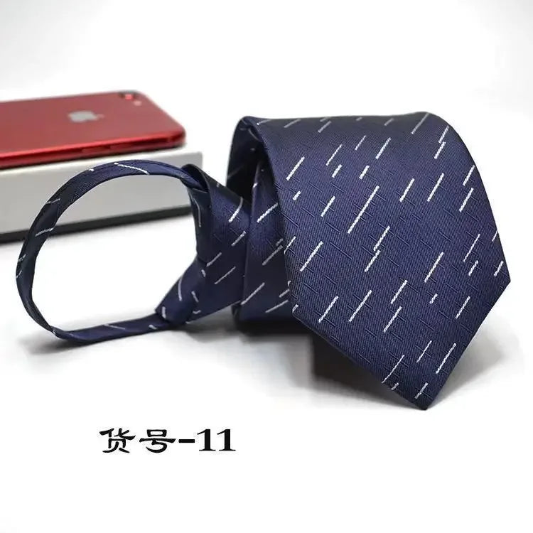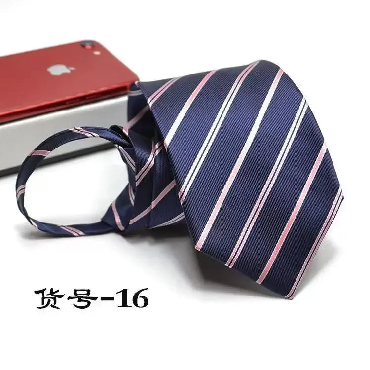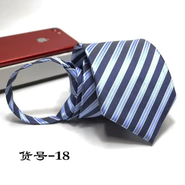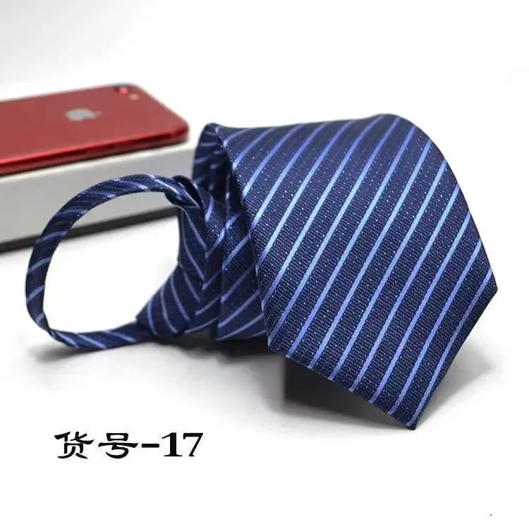 New Arrival Men's 8CM Ties Black Blue Striped Lazy Zipper Neckties for Man Formal Business Groom Wedding Tie Father's Day Gift