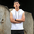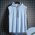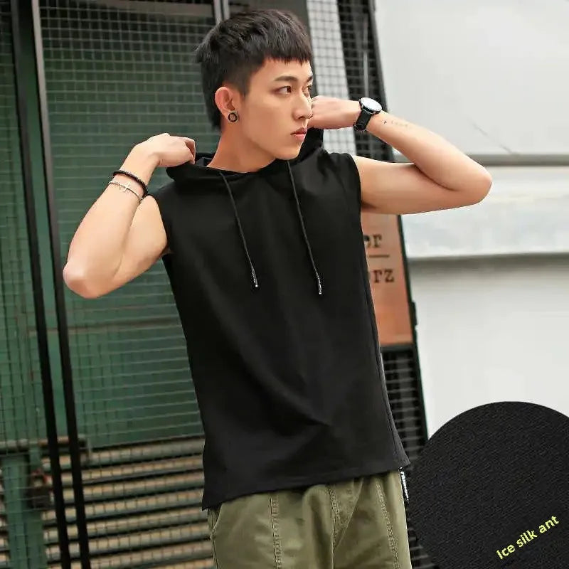 Men's Summer Korean Style Sleeveless T-Shirt Trendy Vest With Hoodie Short Sleeves Sweatshirt Bodycon Tee For Hot Weather