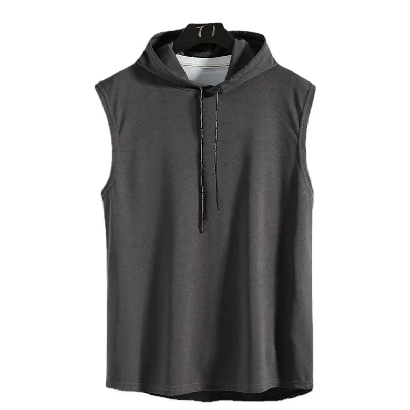 Summer Hooded T-Shirt Men's Sporty Korean Style Fitness Loose Fit Hip Hop Street Sleeveless Couple Top Clothing