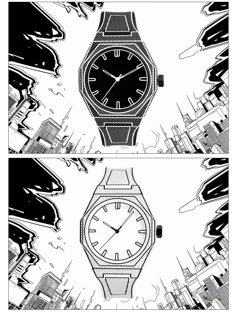 Men’s Quartz Watch Male Watches for Man Wristwatch Strap Clock Gift 2025 Design Comic Style Watches Dial Numberless