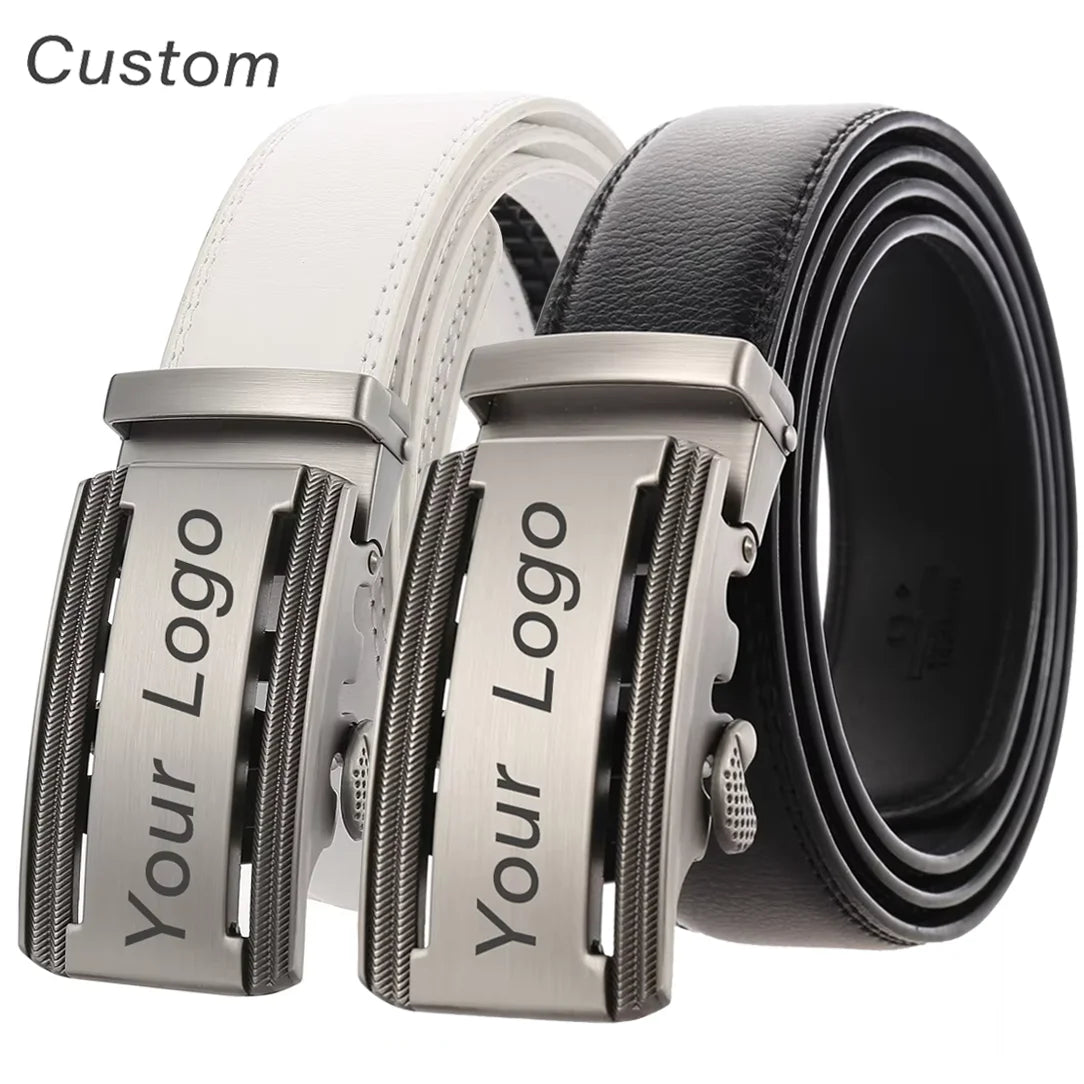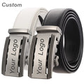 Personalized Mens White Leather Belt Business Custom Engraved Name Logo Men's Automatic Buckle Accessories Waistband Gifts