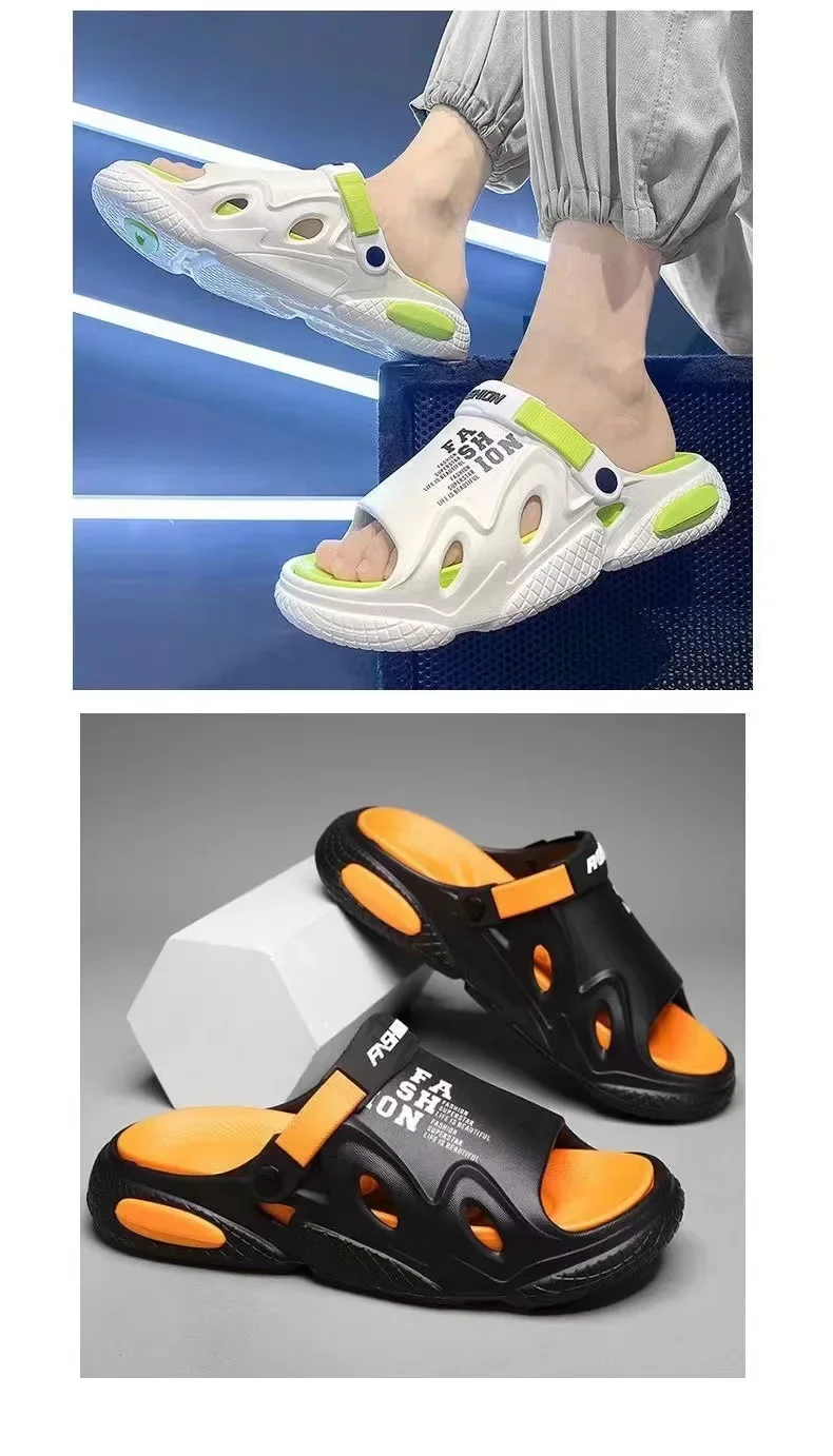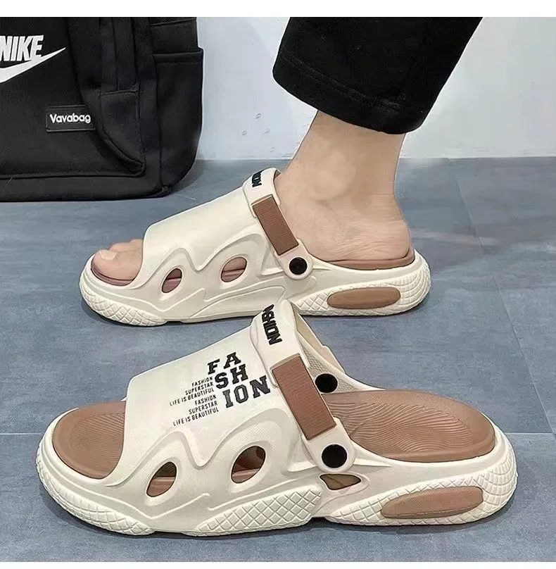 2024 Summer New Men's Flip Flops Thick Bottom Sandals Fashionable Student Outerwear Two-Purpose Beach Shoes EVA Sole PVC Face