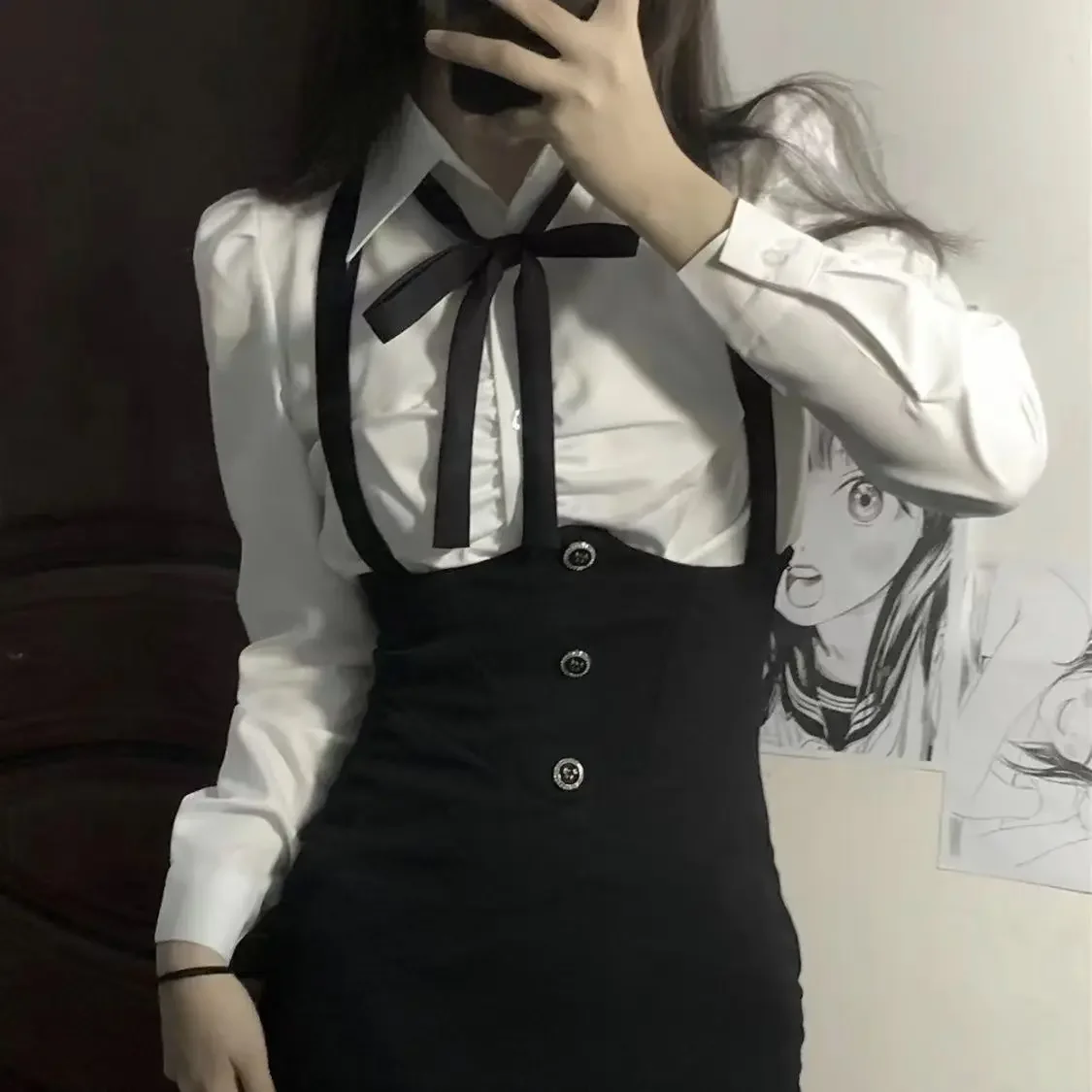?€? Versatile Design : This Pure desire hot girl suit features a versatile design, perfect for various occasions. Its long sleeve white shirt and hanging neck strap dress create a stylish look.