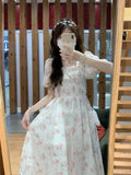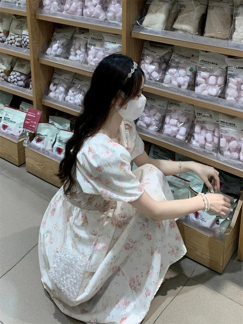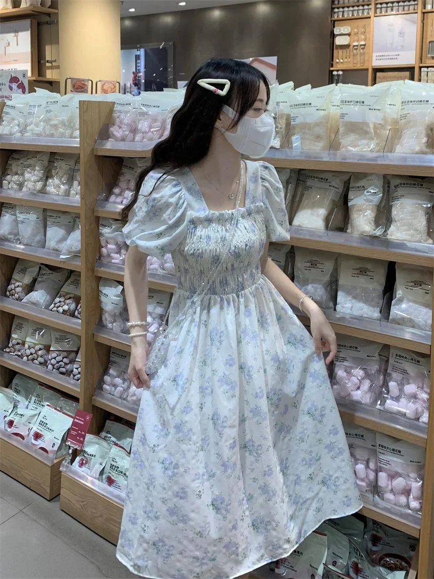 ?€? French Style Vintage Design : Embrace elegance with this French-style vintage floral dress, perfect for summer outings with its British-inspired tight waist and square collar.