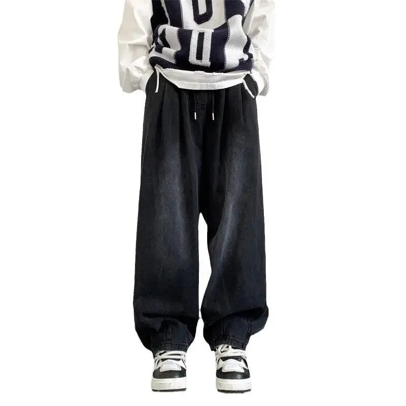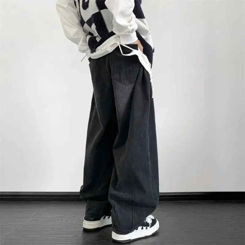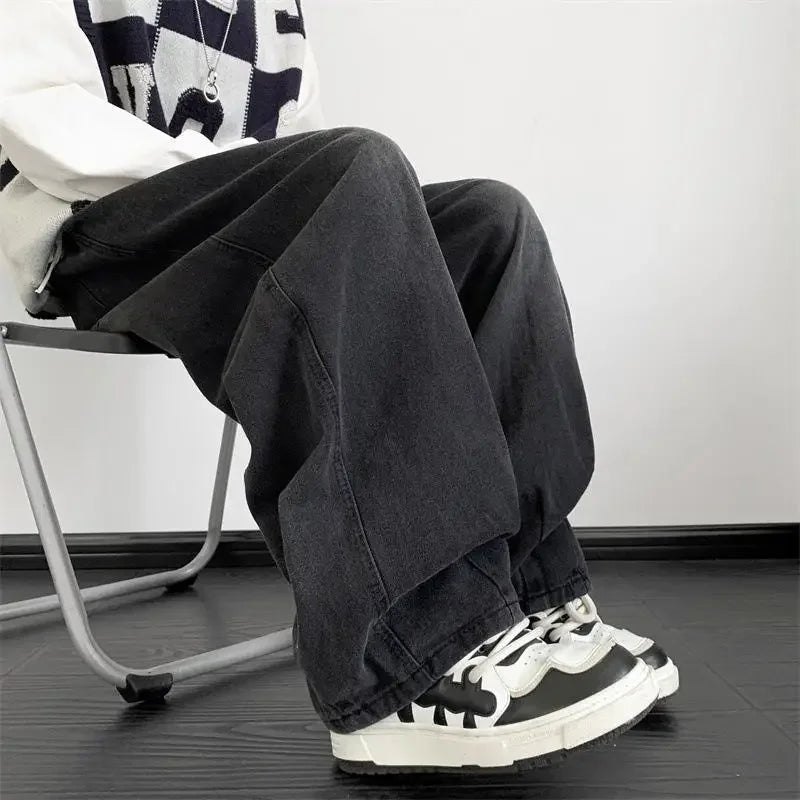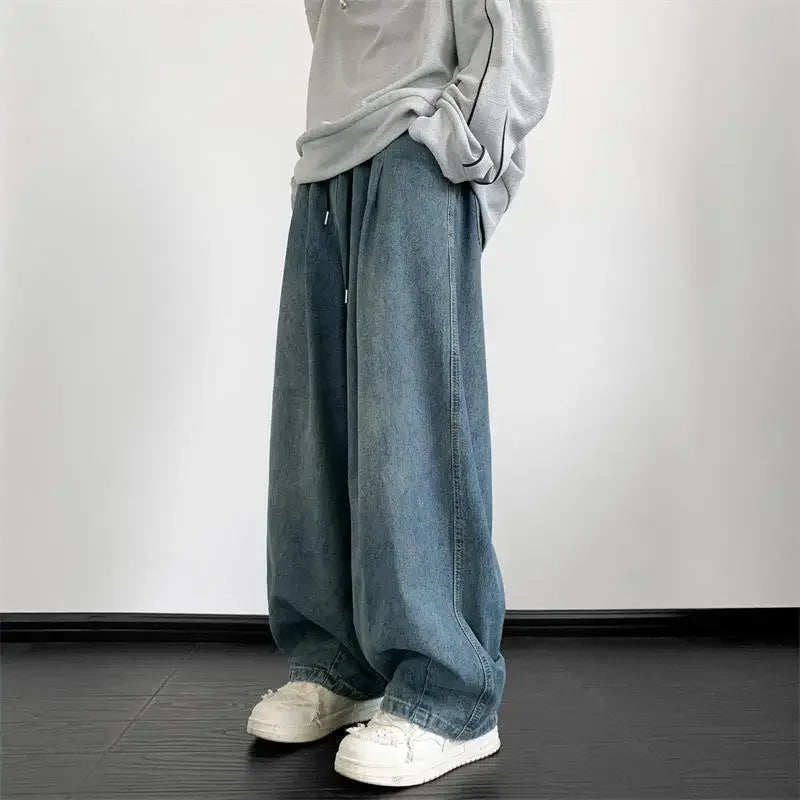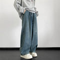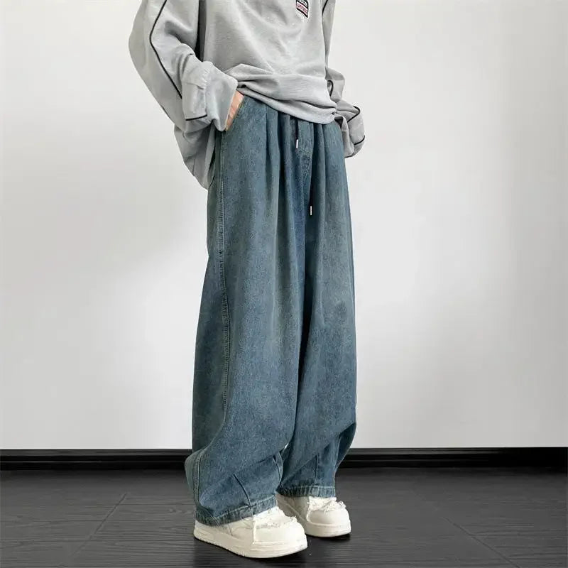 2024 Men's Jeans Autumn Winter Trendy Wide-Leg Style Loose-Fit Youth Trousers One-Piece Agent Fashion Denim Pants Casual Scene