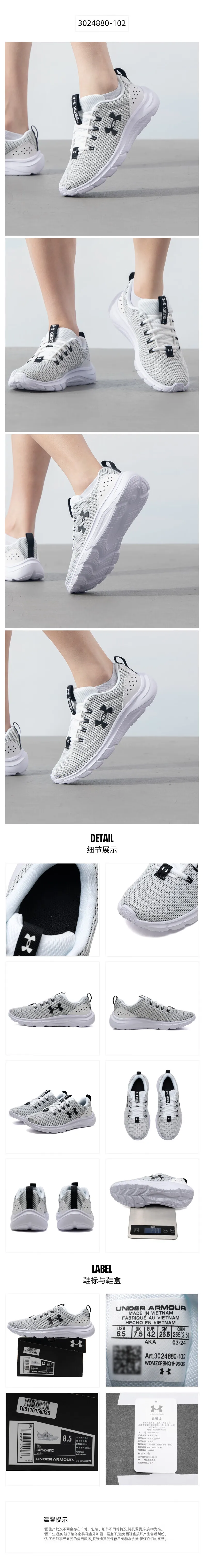 Under Armour men's shoes 2025 new comfortable lightweight low-top breathable cushioned soft sole running shoes 3024880-102