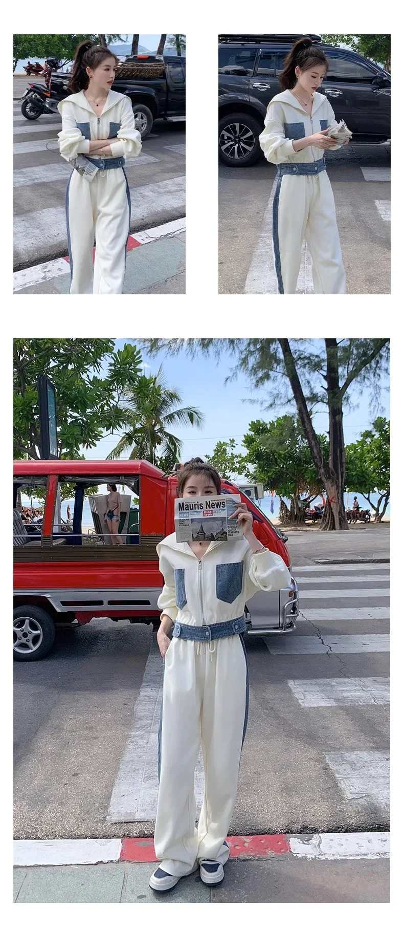 ?€? Fashionable Two-Piece Set : This net red sports leisure suit is a fashionable two-piece set that combines a trendy sweater with wide-leg pants, perfect for creating a stylish streetwear look.