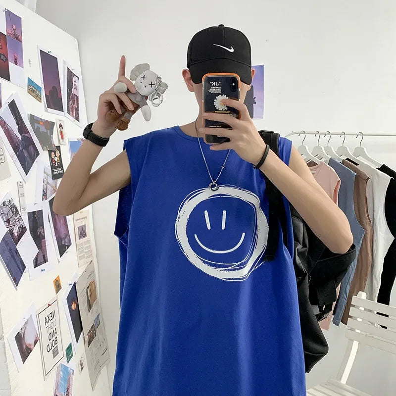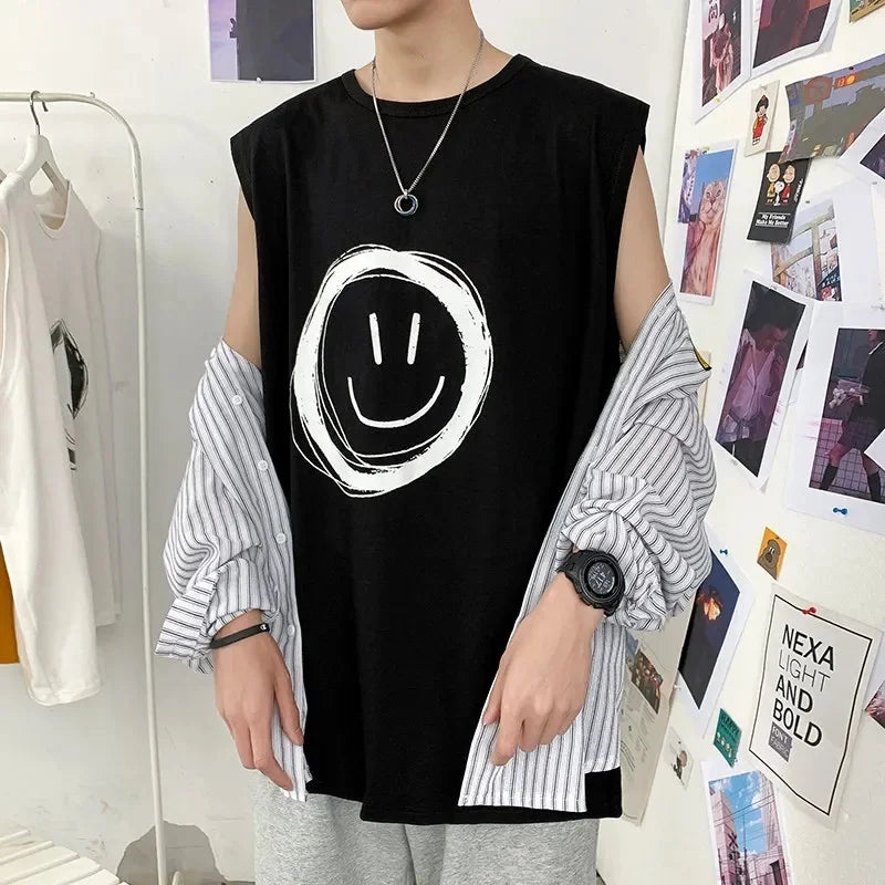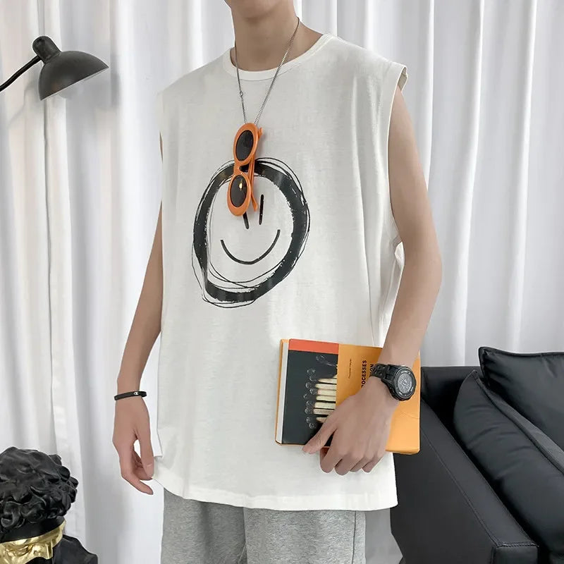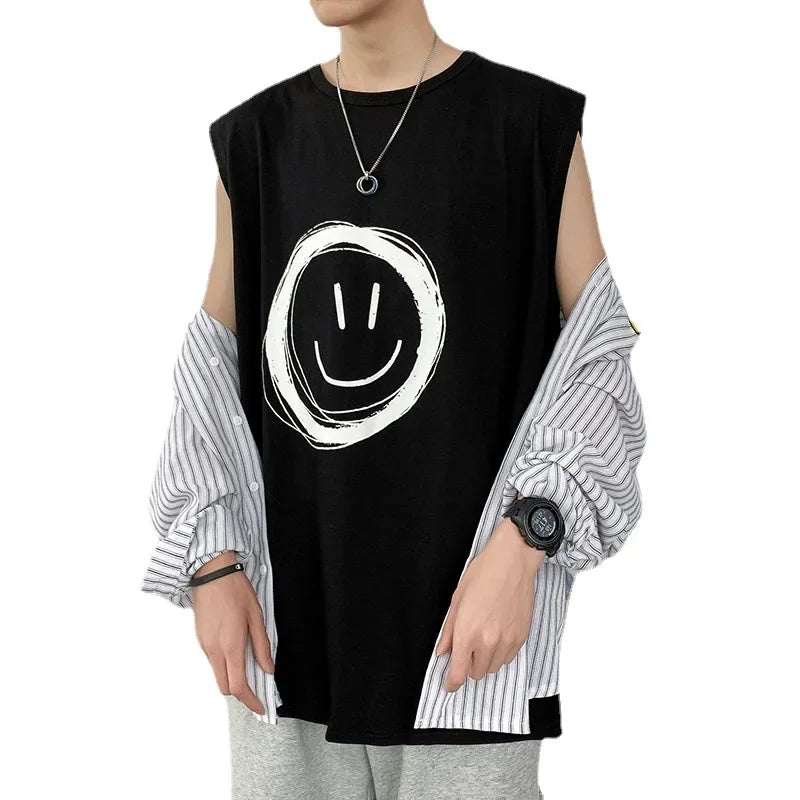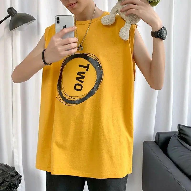Men's Sporty Sleeveless T-Shirt Casual Loose Fitness Top Summer Fashion Harajuku Style Tank Top for Active Men