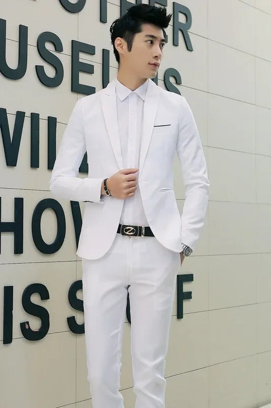 Casual Slim Fit Men's Suit Set Korean Style Business Wedding Groomsmen Formal Wear Comfortable Breathable Male Model Outfit
