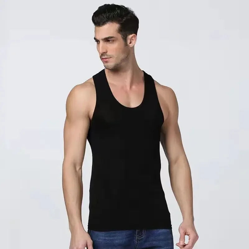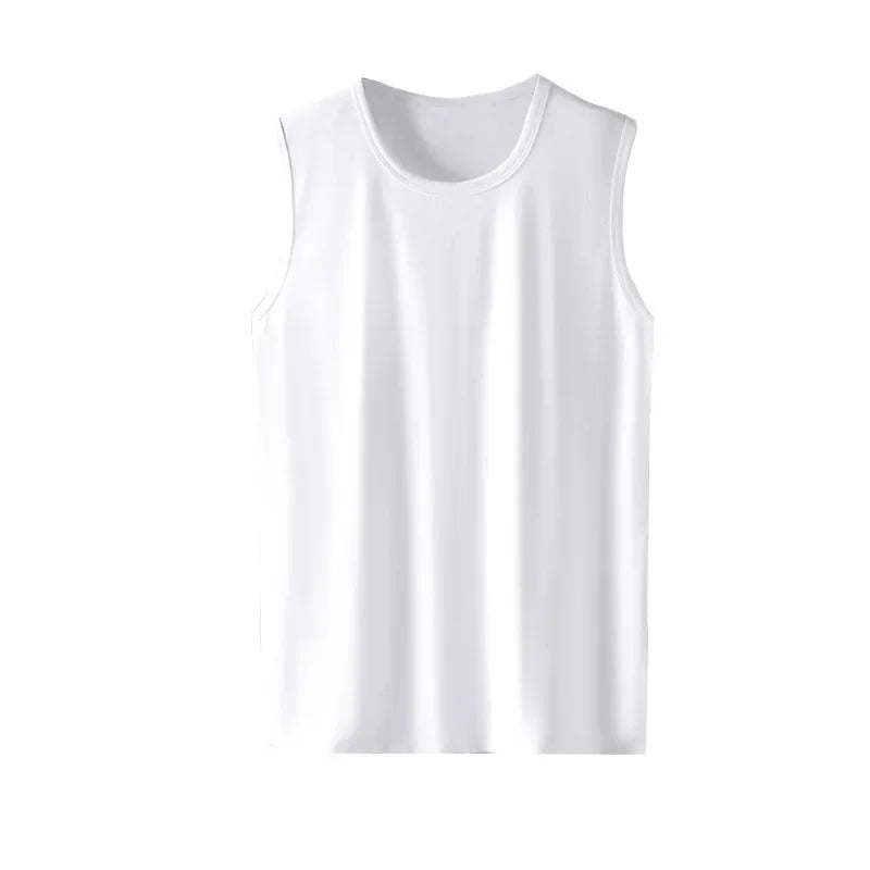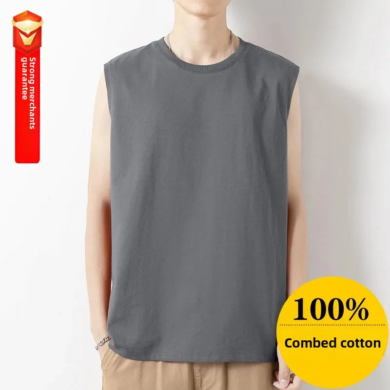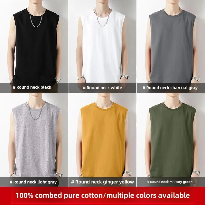 Pure Cotton Sleeveless Vest Men's T-shirt Solid Color Slim Fit round Neck Men's Fashion Versatile Student Basic Tee Base Shirt