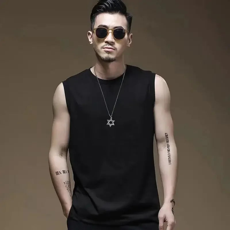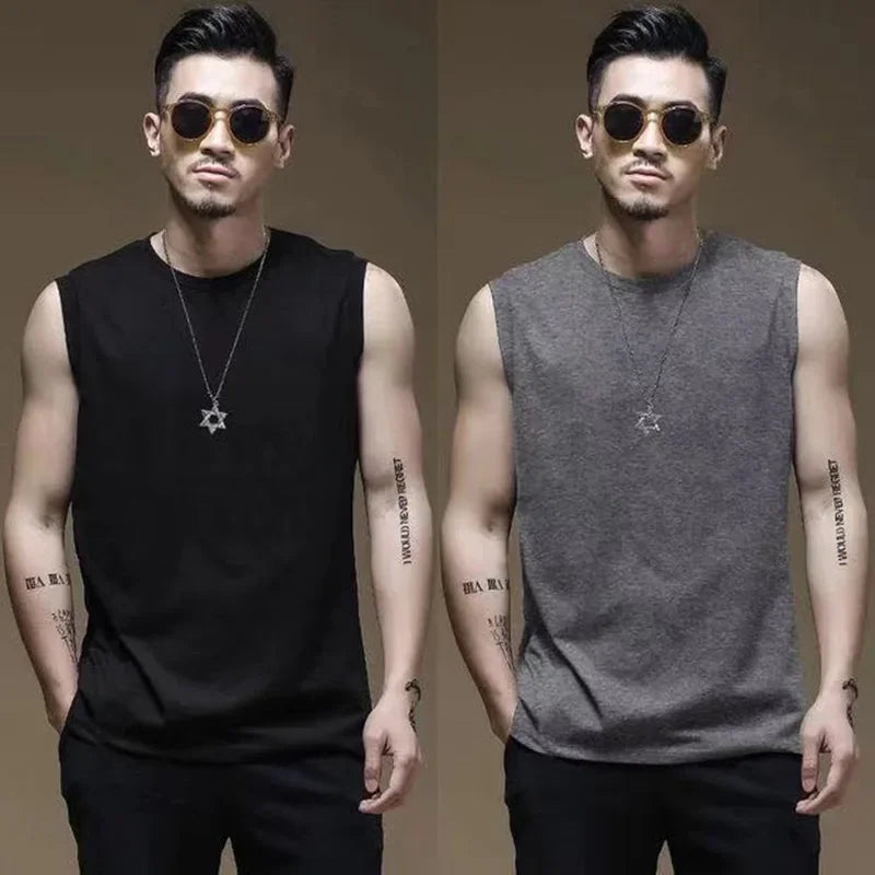 Men's Sleeveless Vest Quick Dry Fitness Summer Top Inner Wear Training Basketball Sport Outerwear Shoulder T-Shirt