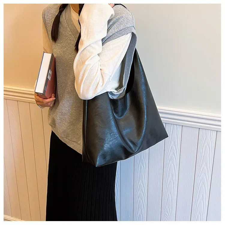 Casual Style Commuting Bags Lightweight PU Soft Leather Tote Bag Large Capacity Women Big Shoulder Bag Underarm Bag Hasp Closure