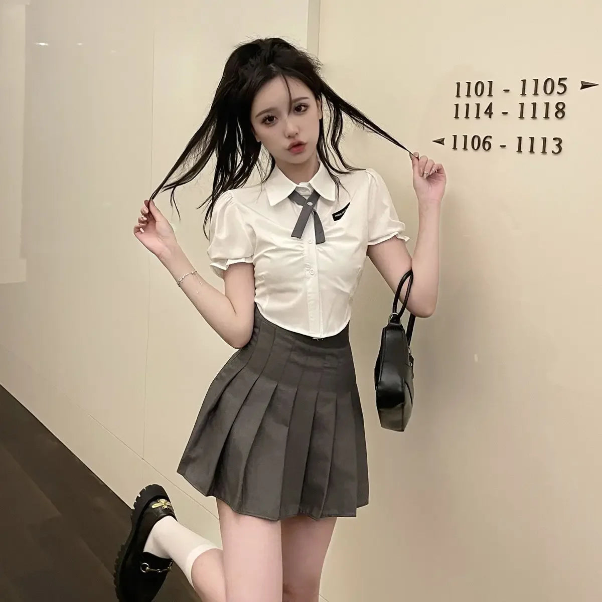 ?€? Pure Two-Piece Set : The pure two-piece set includes a shirt and skirt, providing a complete look without the need for additional pieces.