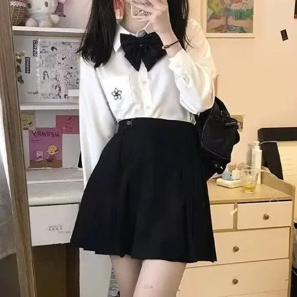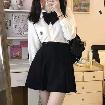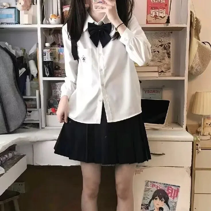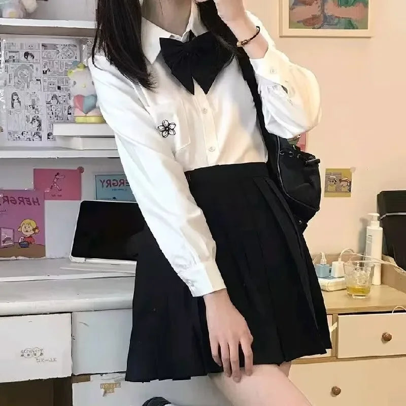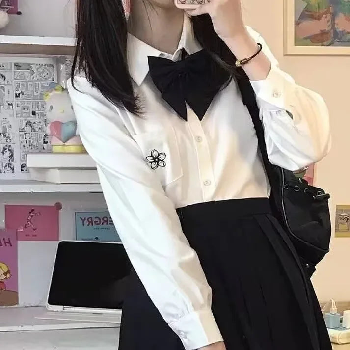 ?€? Japanese College Style : Embrace the sweet Japanese college style with this embroidered uniform shirt, perfect for adding a touch of elegance to your daily look.