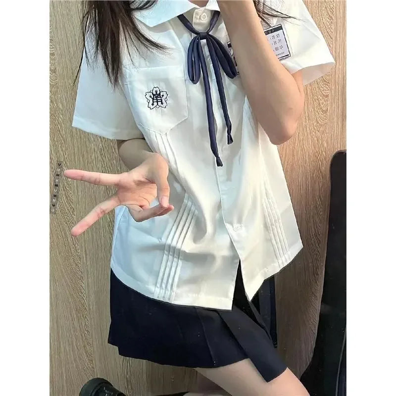 ?€? Japanese College Style : Embrace the classic Japanese college style with this white shirt, perfect for a preppy look.