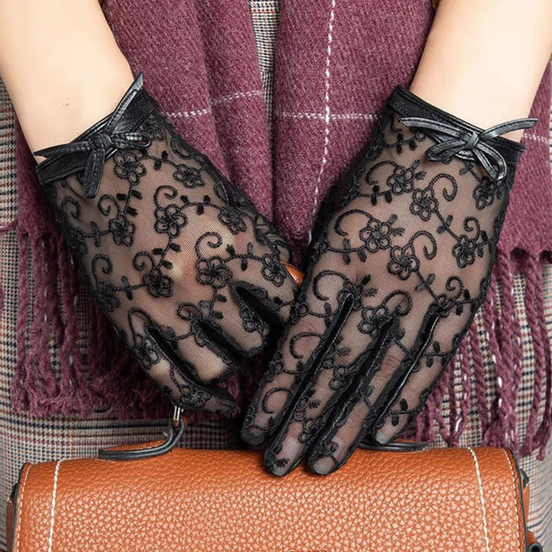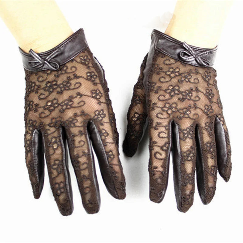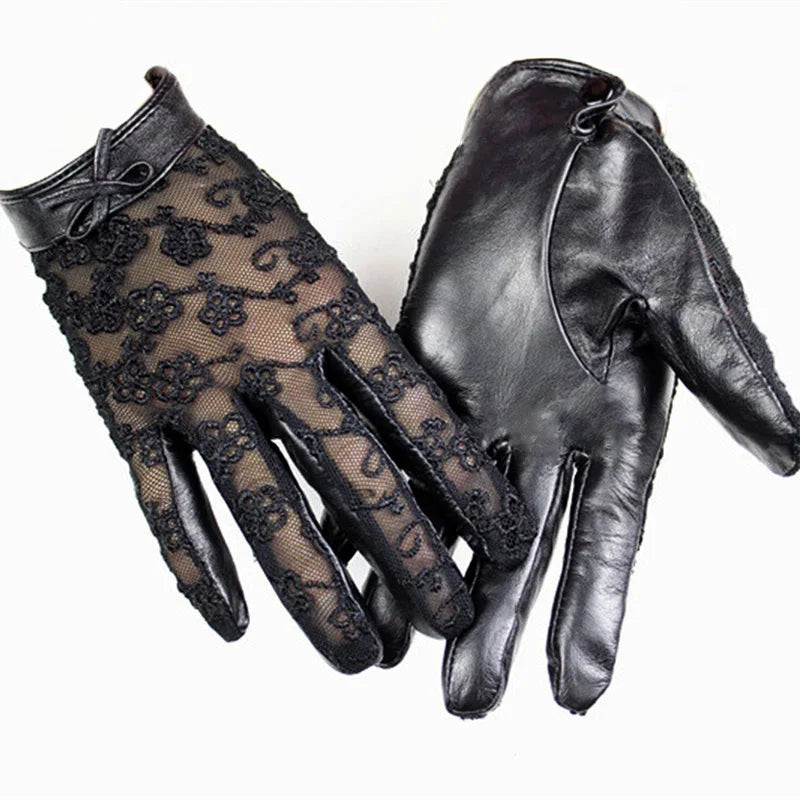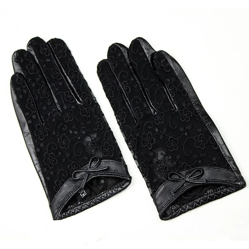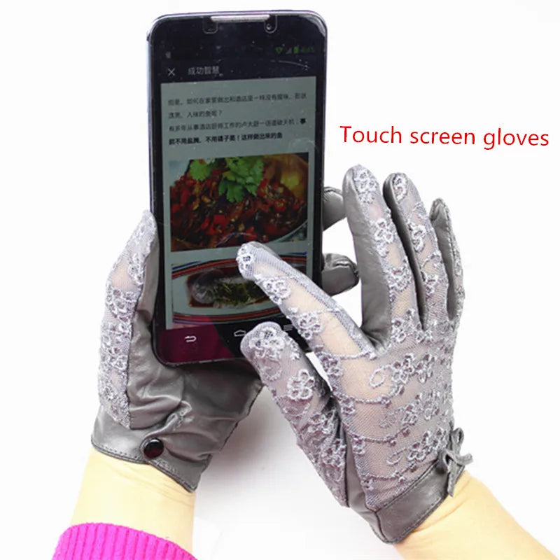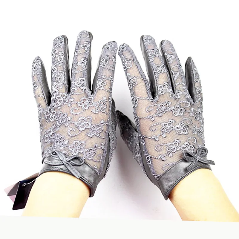 Touchscreen Women's Sheepskin Gloves Fashion Lace Thin Unlined Spring and Summer Ladies Leather Driver Gloves Free Shipping