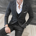 ( Jackets + Vest + Pants ) Men's Fashion High-grade Business Striped Suit Three-piece Men Wedding Dress Smart Suit Blazers