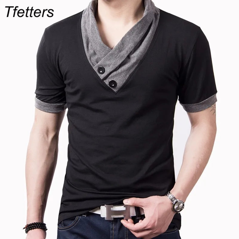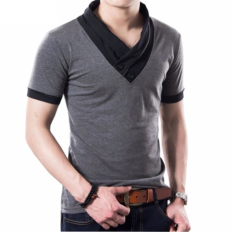 TFETTERS 2025 Fashion Summer Men's T-shirt Slim Fit V-neck Short Sleeve Cotton Gray T Shirt for Man Plus Size Tops