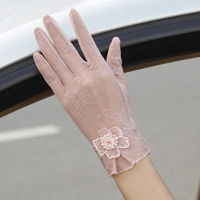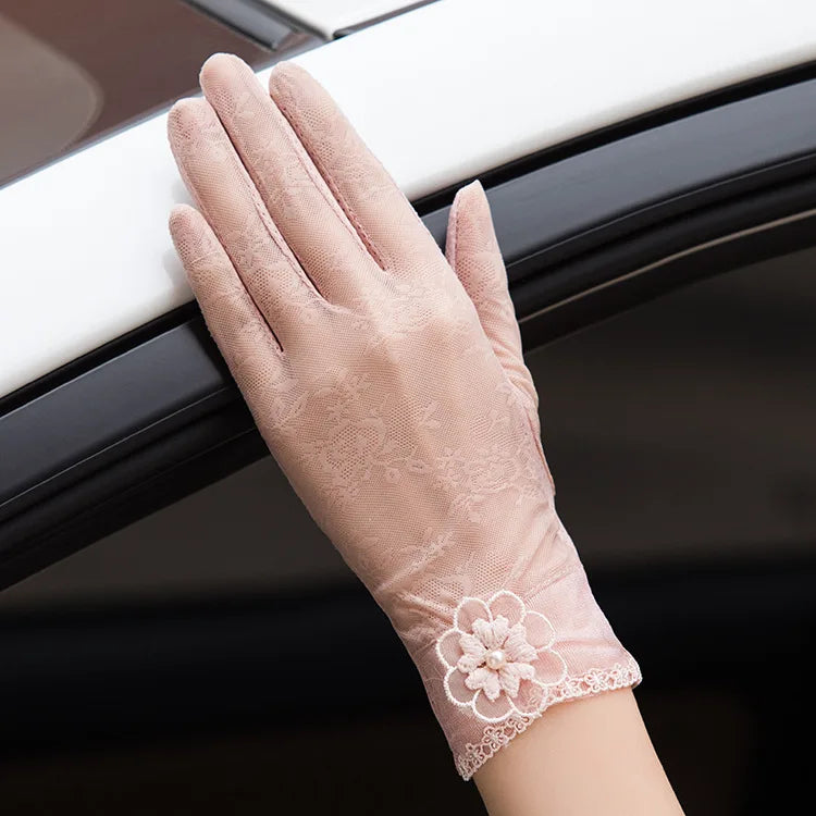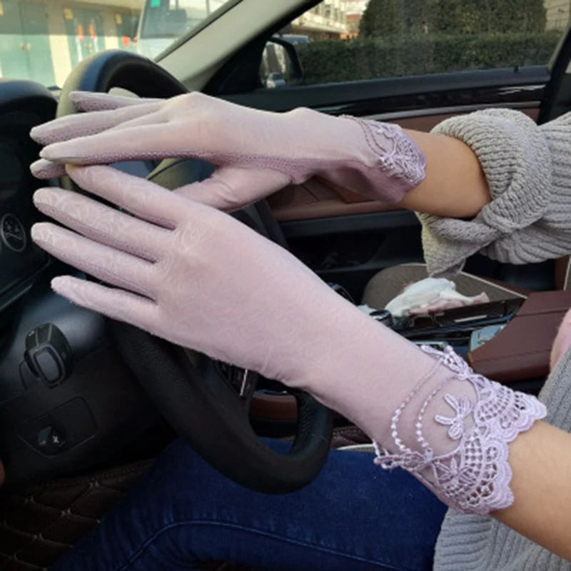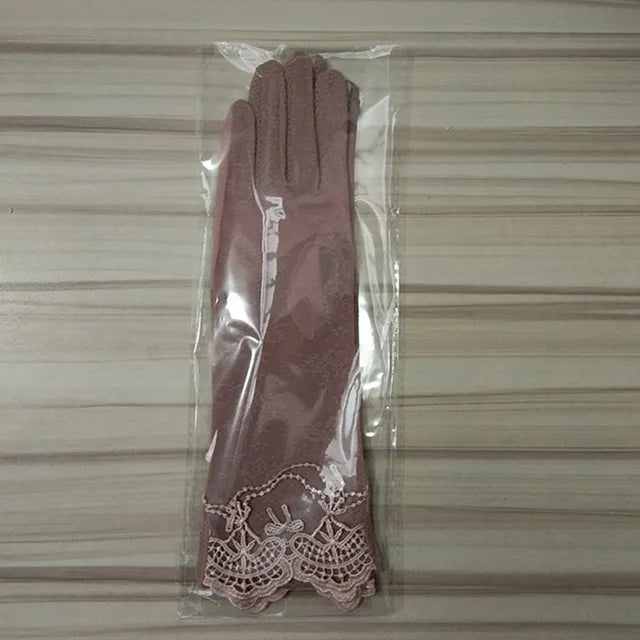 Sunscreen gloves non-slip lace ice silk gloves sexy female thin section summer UV touch screen driving long gloves 03K