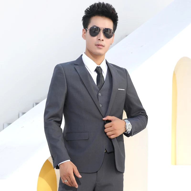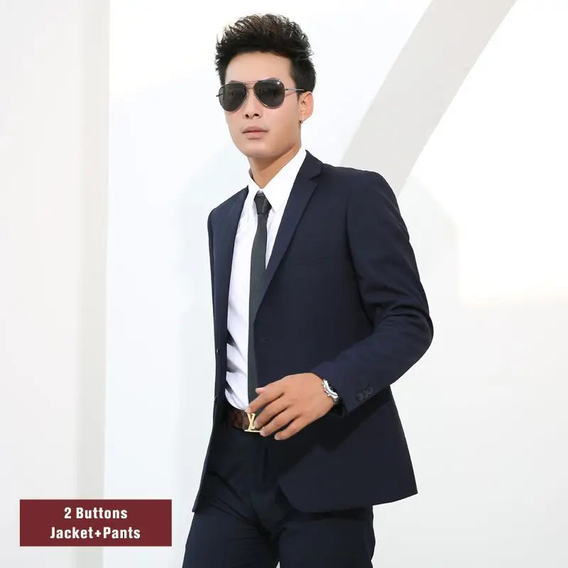 Men Suits Slim Fit Business Formal Casual Classic Suit Wedding Groom Party Prom Single Breasted Solid Color Black Gray Navy Blue