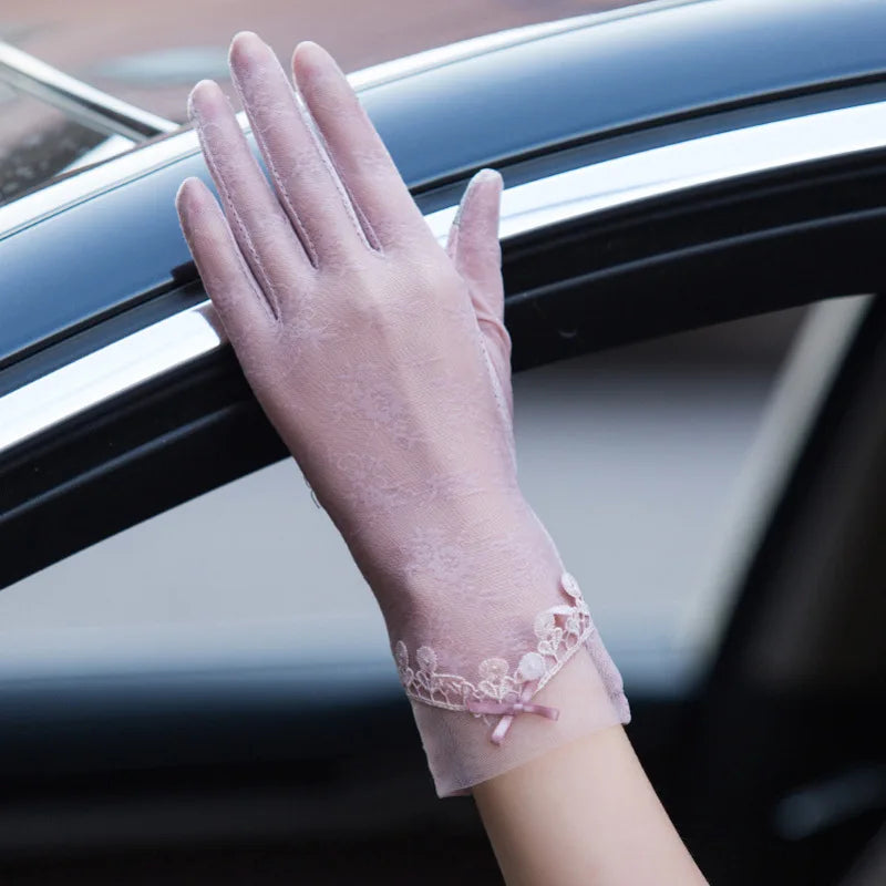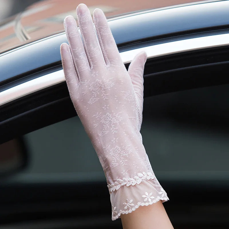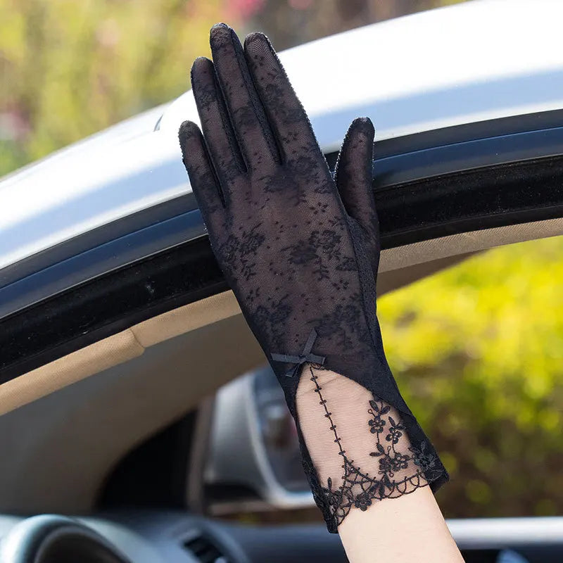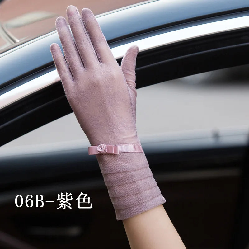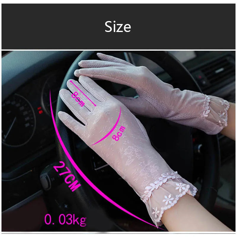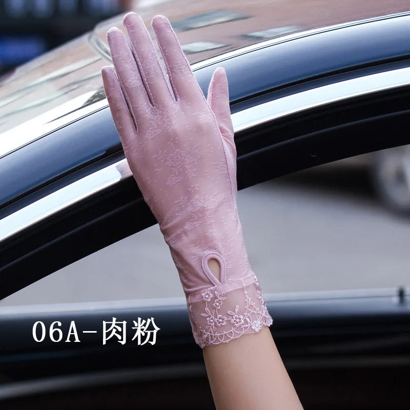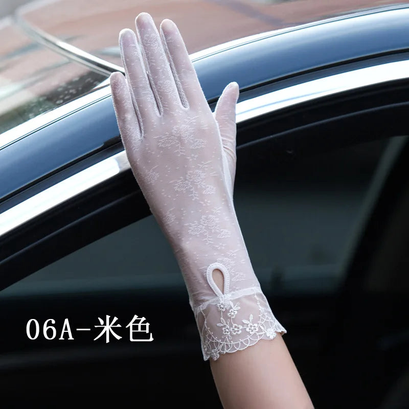 Summer Sunscreen Sexy Lace Women Driving Outdoor Thin Breathable Non Slip Medium Gloves Touch Screen Exquisite Female Elasticity