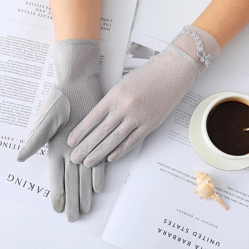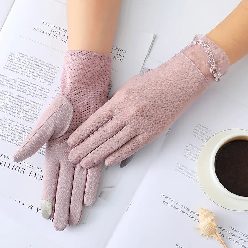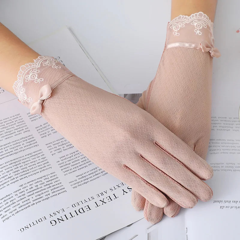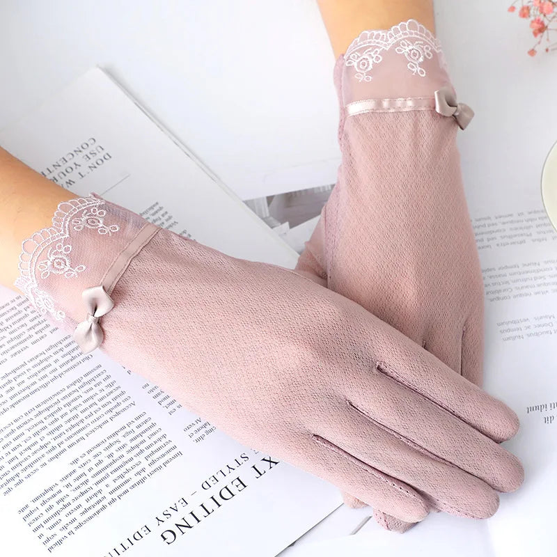 Summer Women Sexy Lace Thin Sunscreen Touch Screen Gloves Soft Ice Silk Skid Driving Anti-UV Elegant Female Outdoor Gloves
