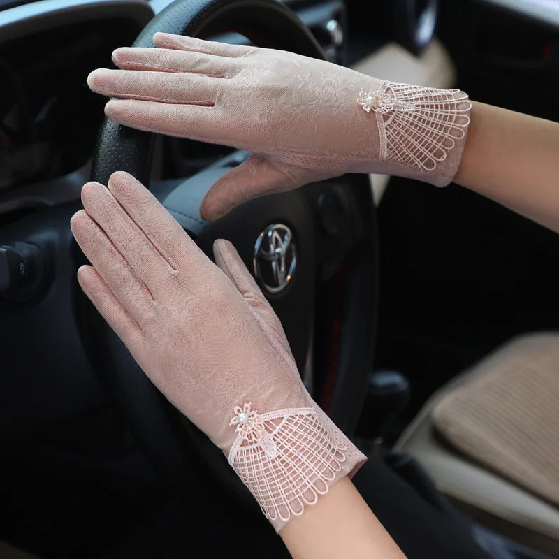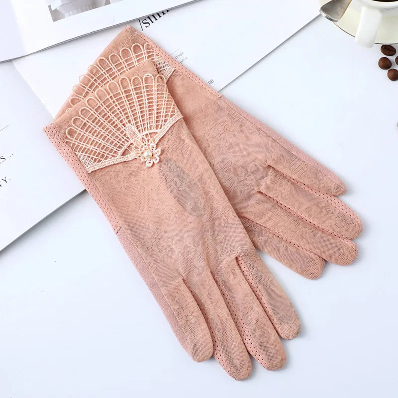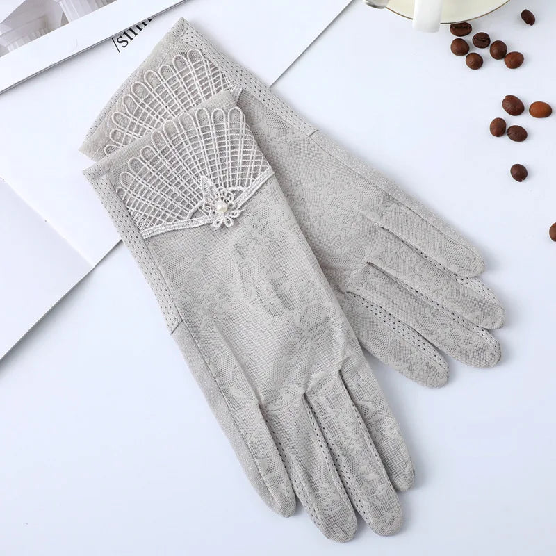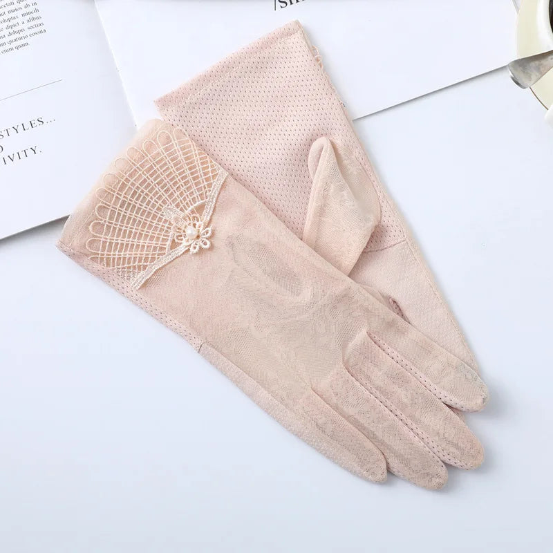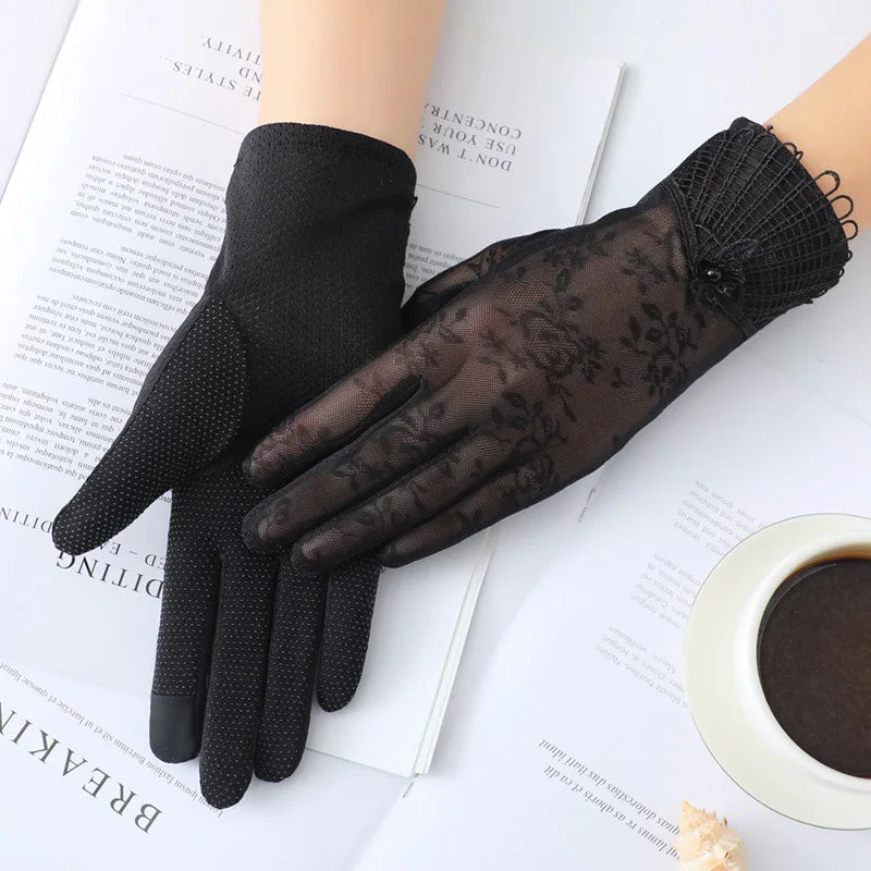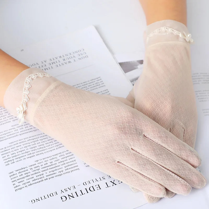 Summer Women Sunscreen Touch Screen Anti-UV Ice Silk Gloves Thin Breathable Non-slip Short Female Elegant Jacquard Drive Gloves