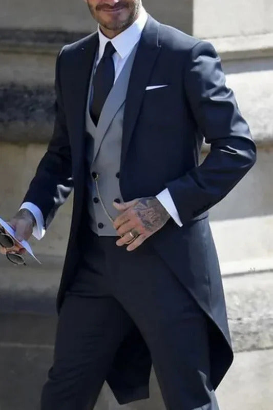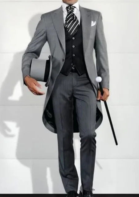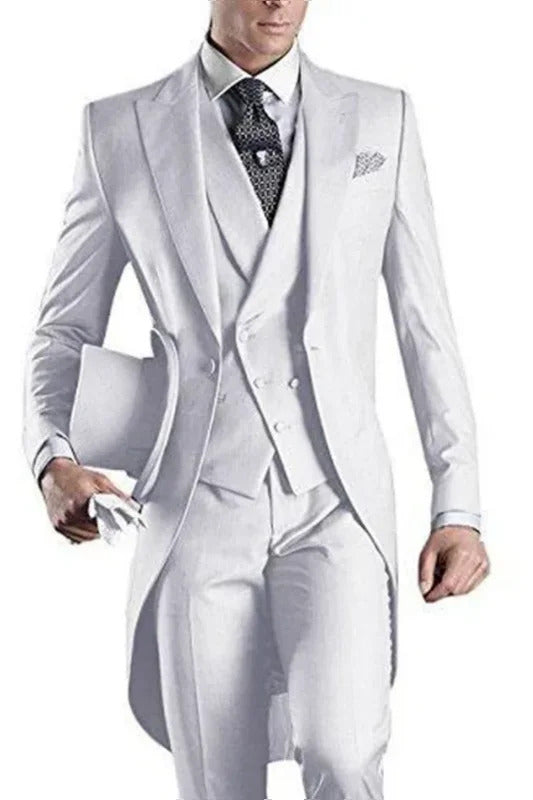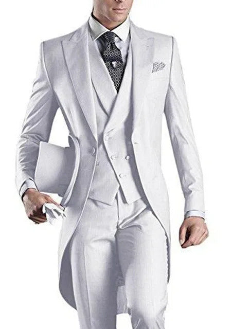 礼服男Italian gentleman style Wedding Man Long tail coat Groom Prom Tuxedos Formal Mens Suits terno masculino (Jacket +Pants +Vest)
