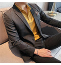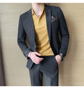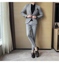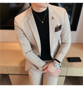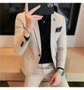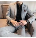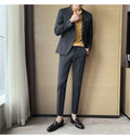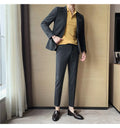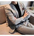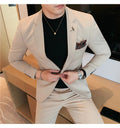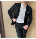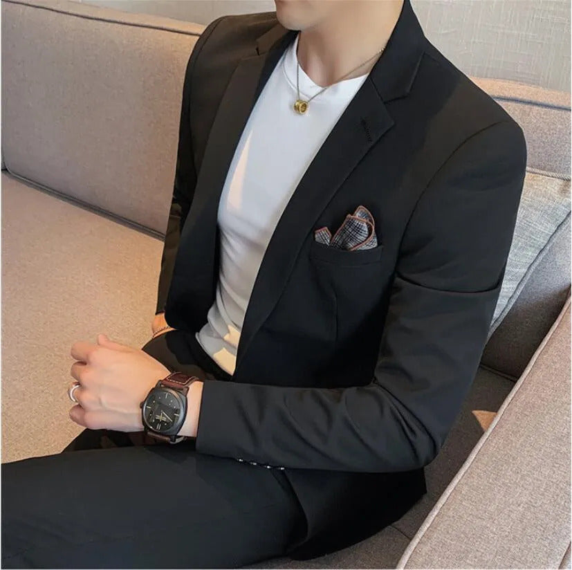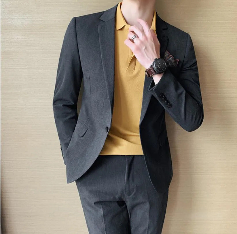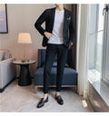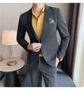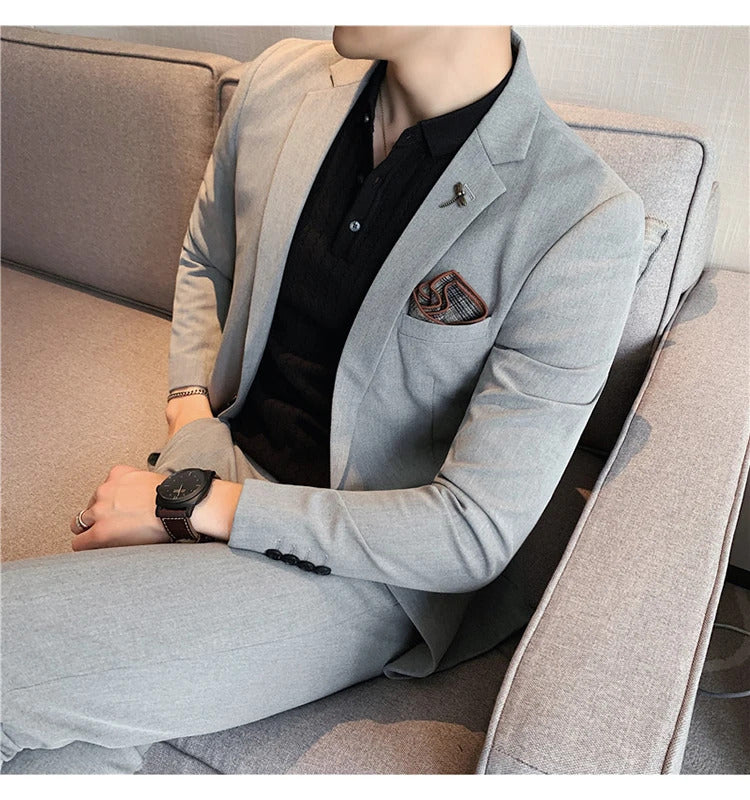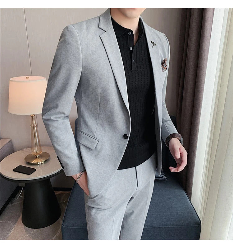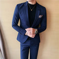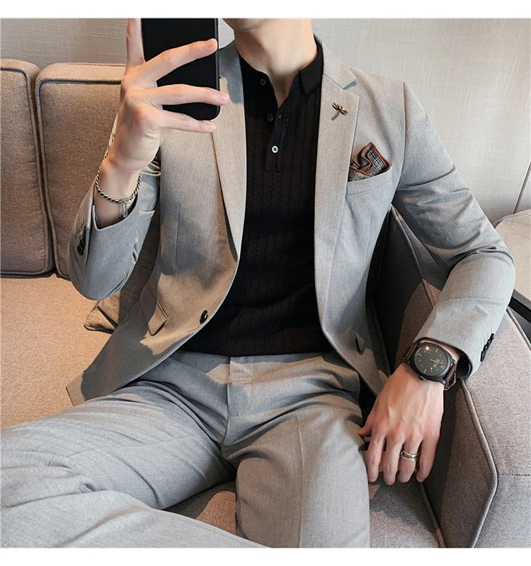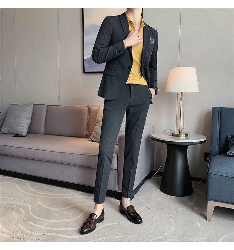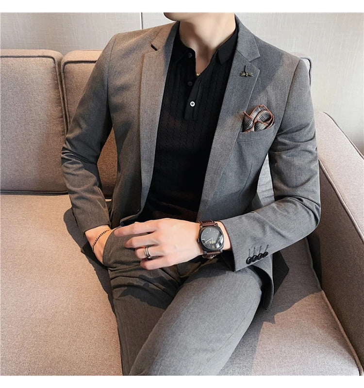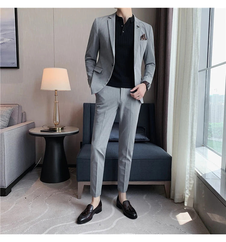 商务装男(Jacket+Pants) 2023 Suits Fashion New Men High Quality Low Price Business Wedding Groom Pure Color Blazers Trousers 2 Pcs Set