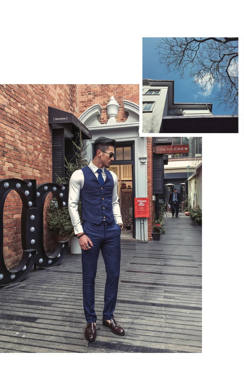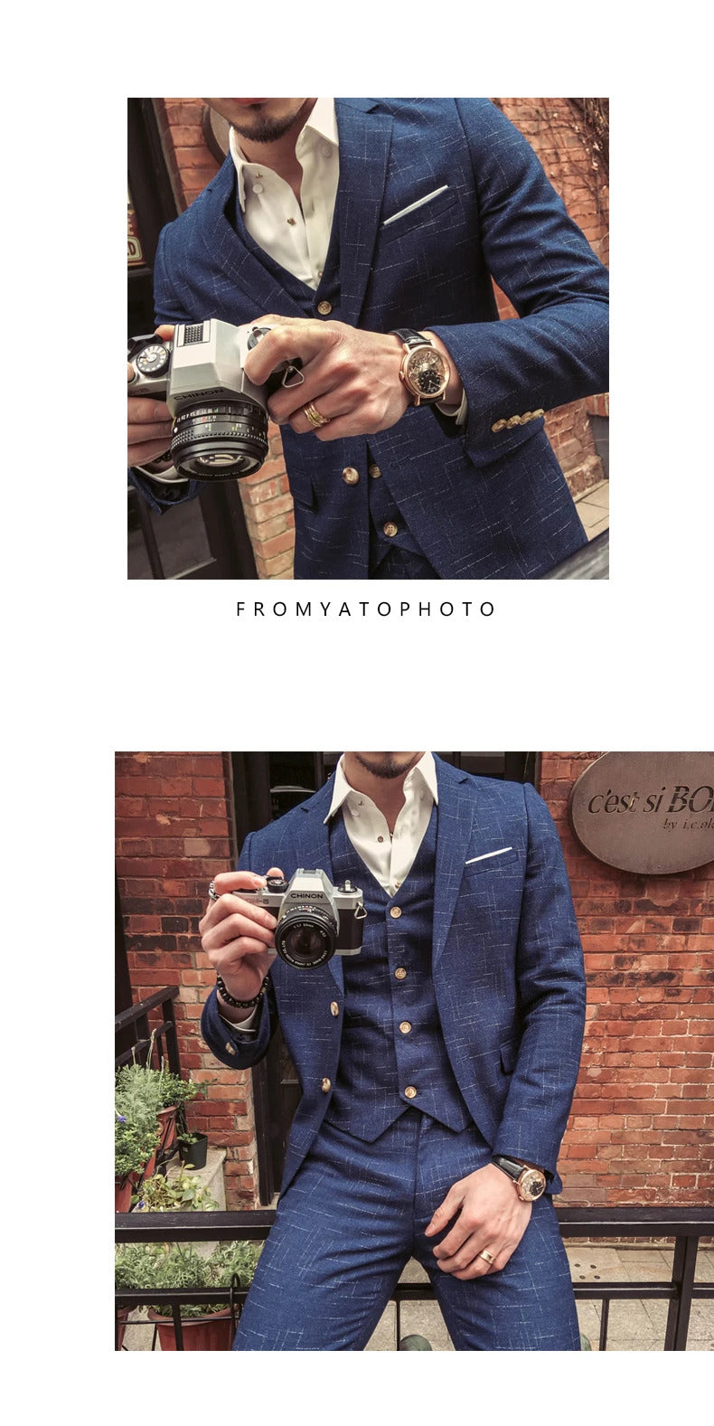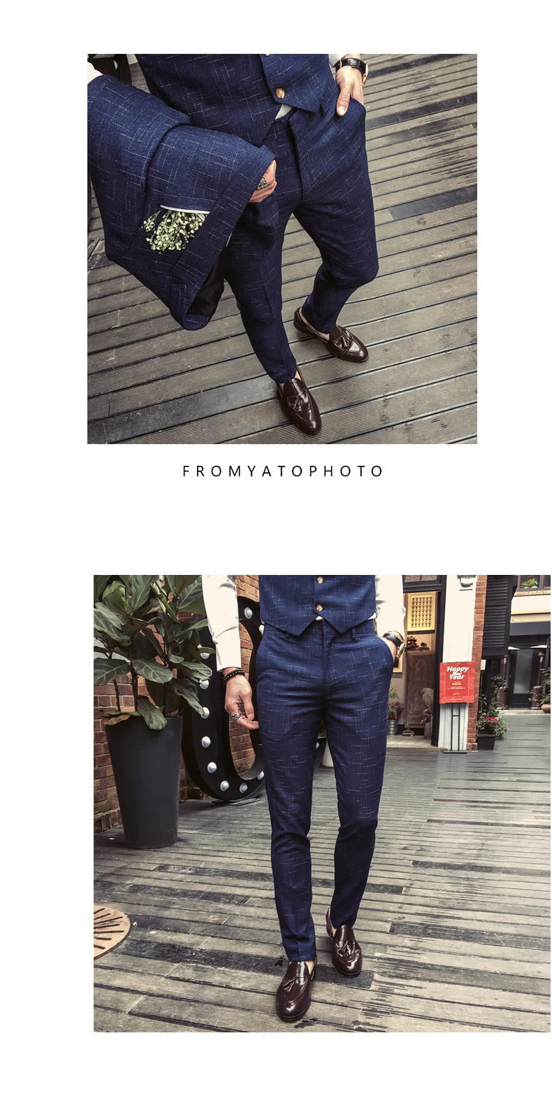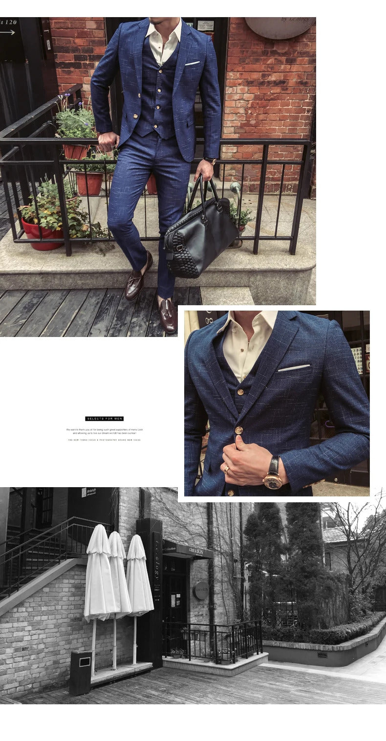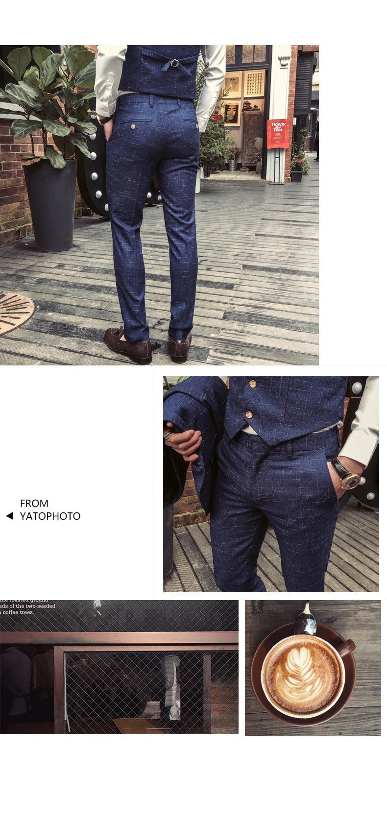 礼服男Jacket + Pants / Fashion Boutique Plaid Formal Business Mens Slim Suit 2 Pcs Set Groom Wedding Dress Blazer and Pants