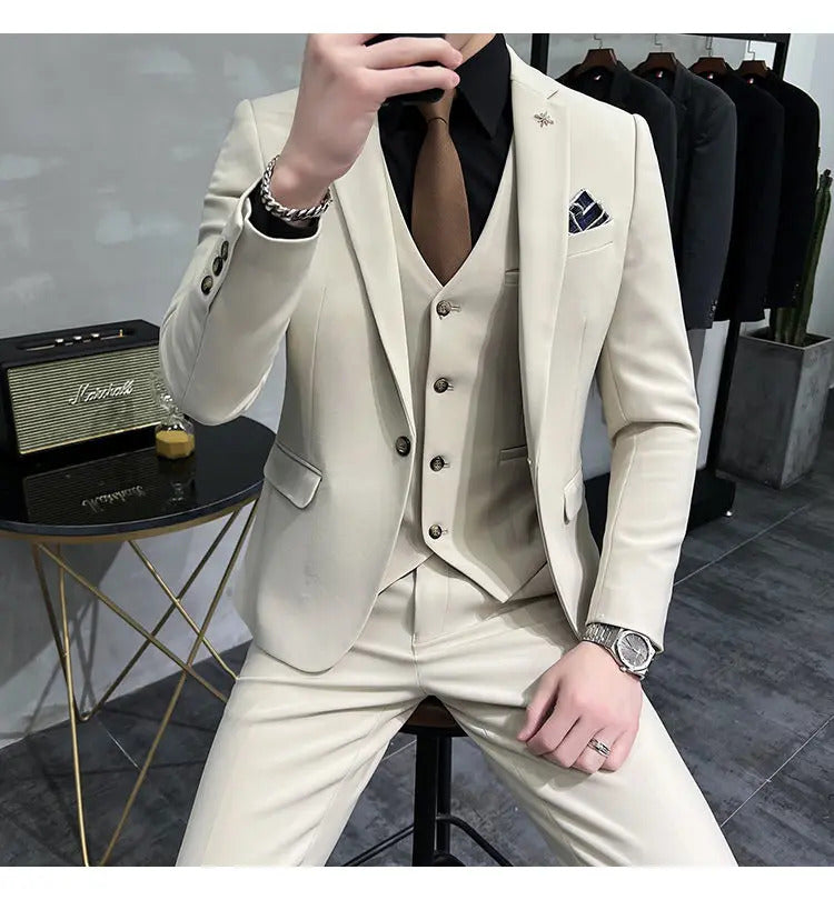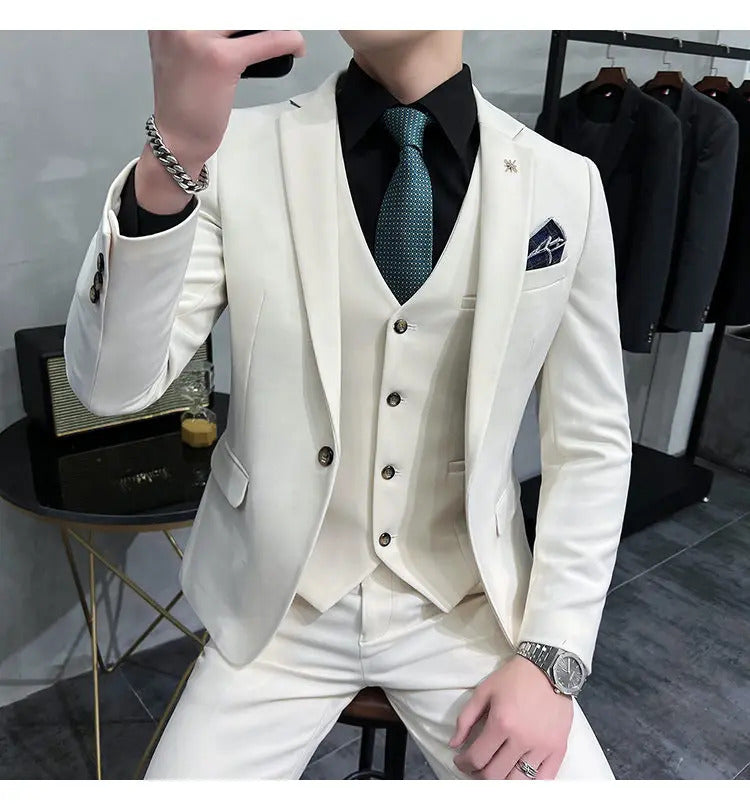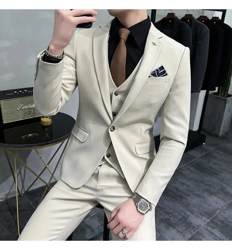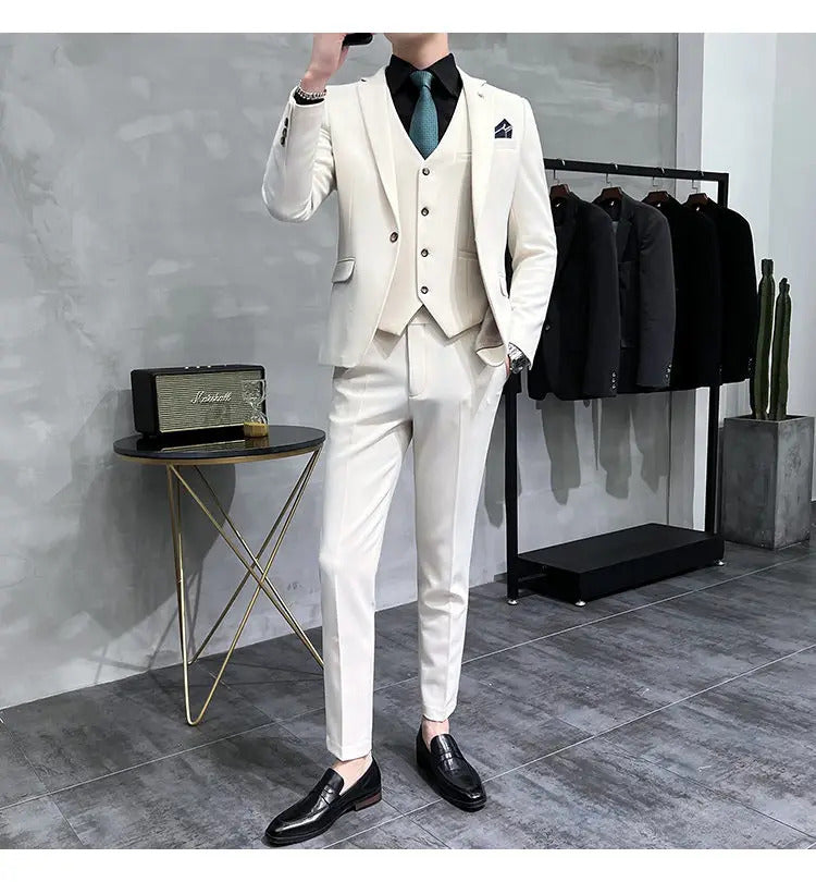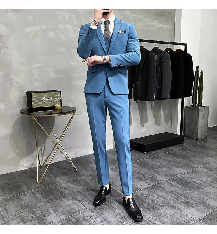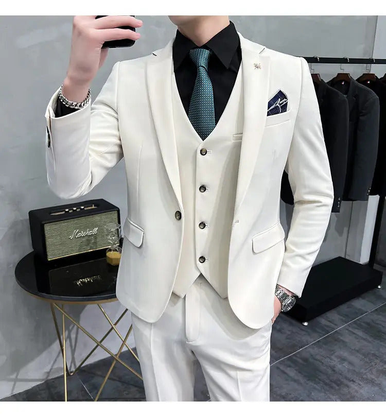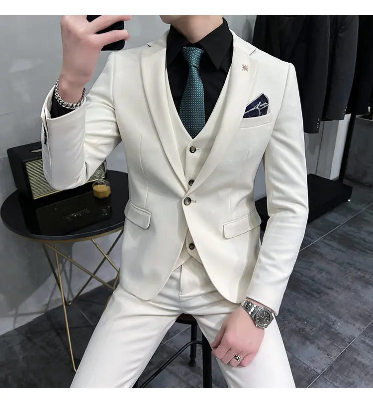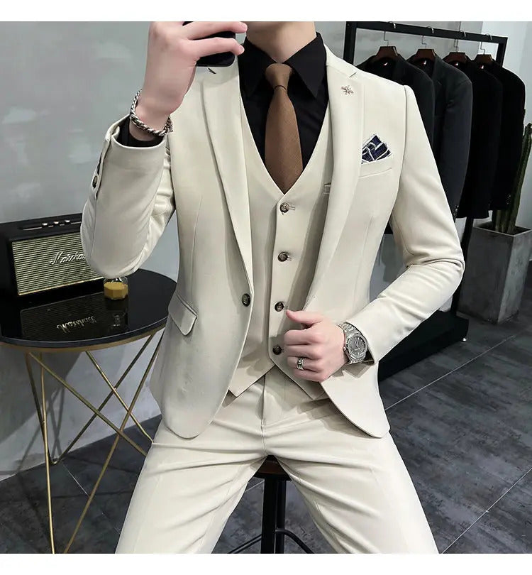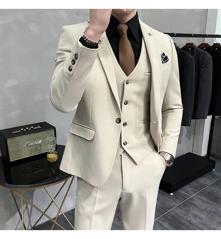 礼服男(Jackets+Vest+Pants) High quality Suits For Wedding Men Set Blazers Elegant Formal 3 Pieces Full Classic Business Tuxedo 4XL-M