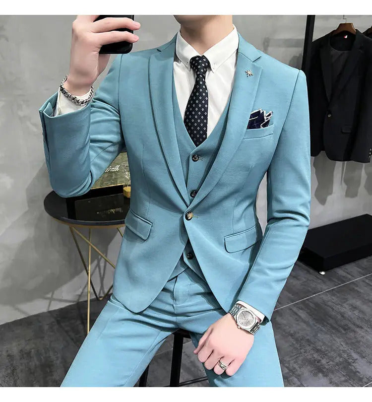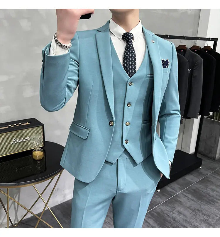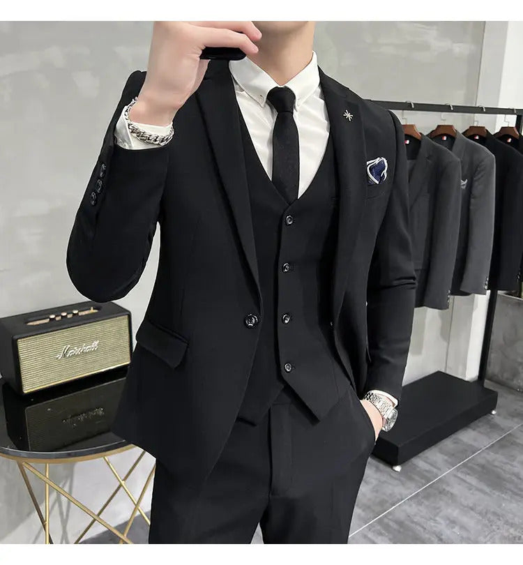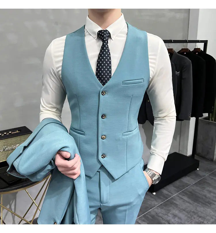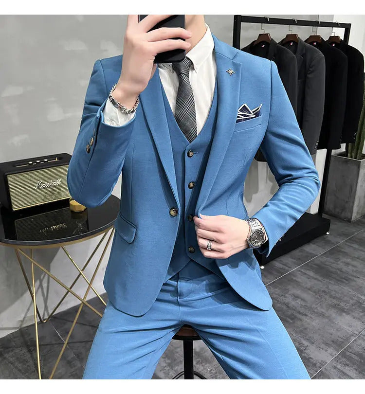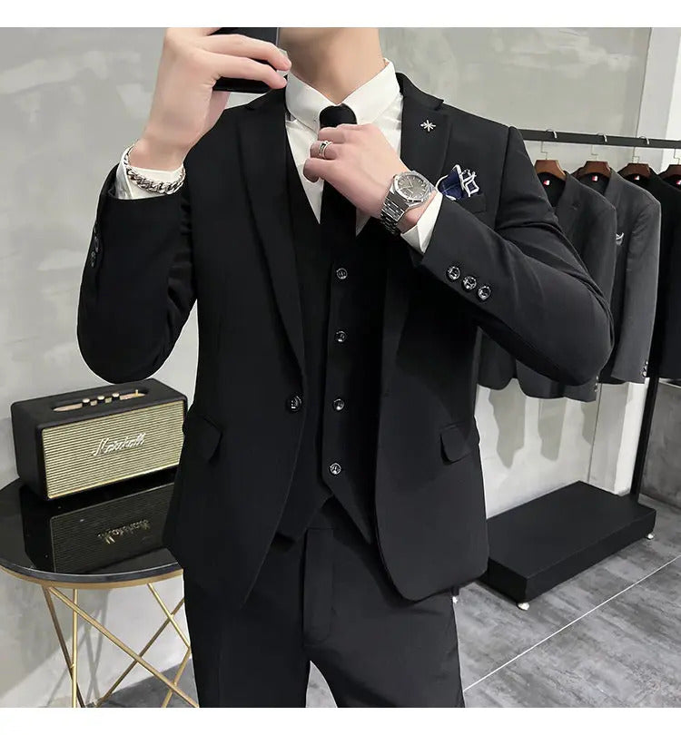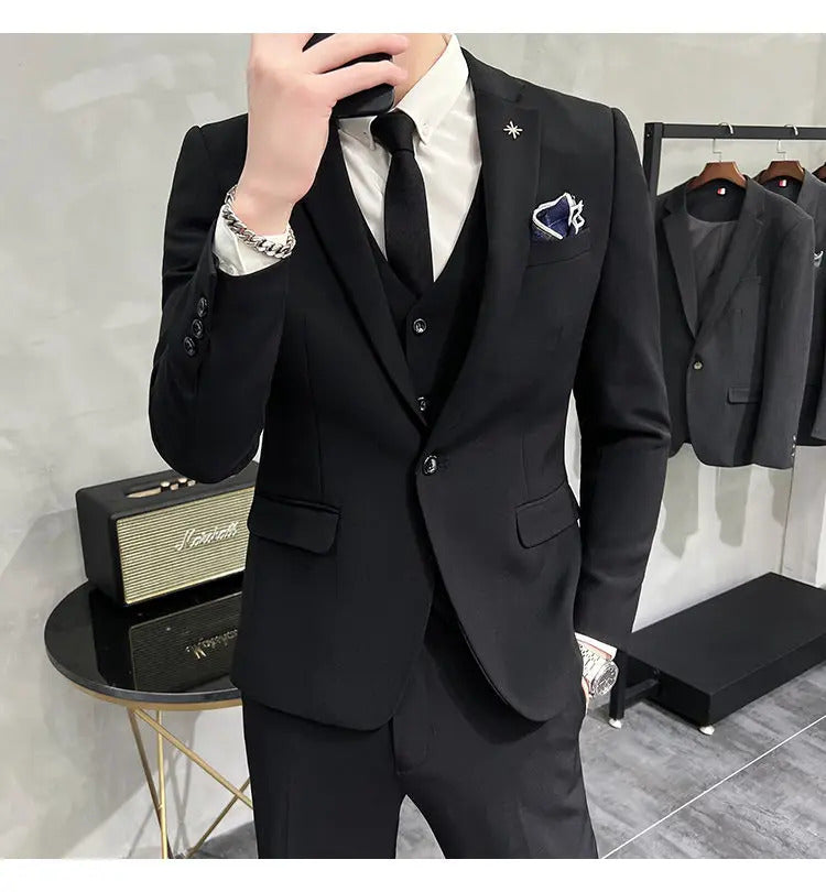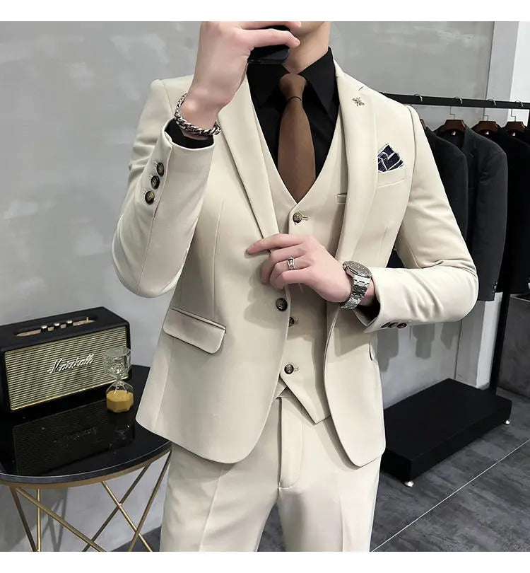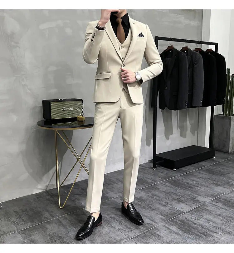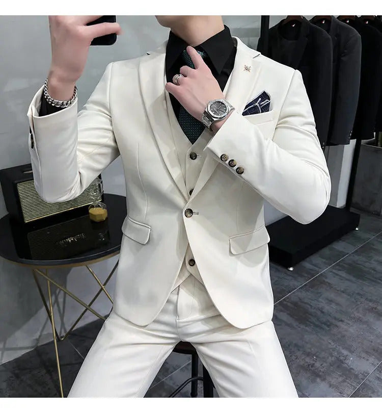 礼服男(Jackets+Vest+Pants) High quality Suits For Wedding Men Set Blazers Elegant Formal 3 Pieces Full Classic Business Tuxedo 4XL-M
