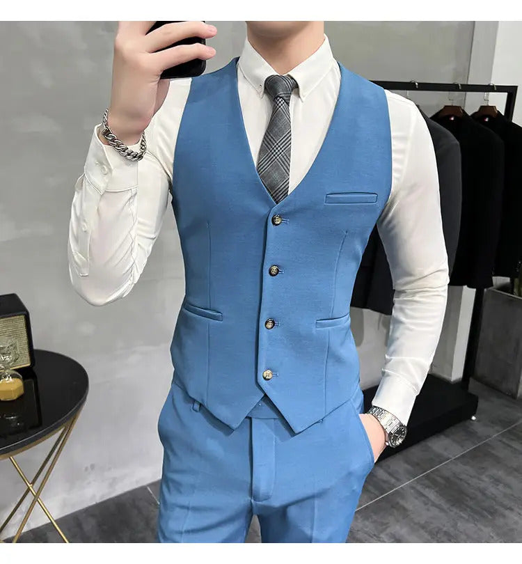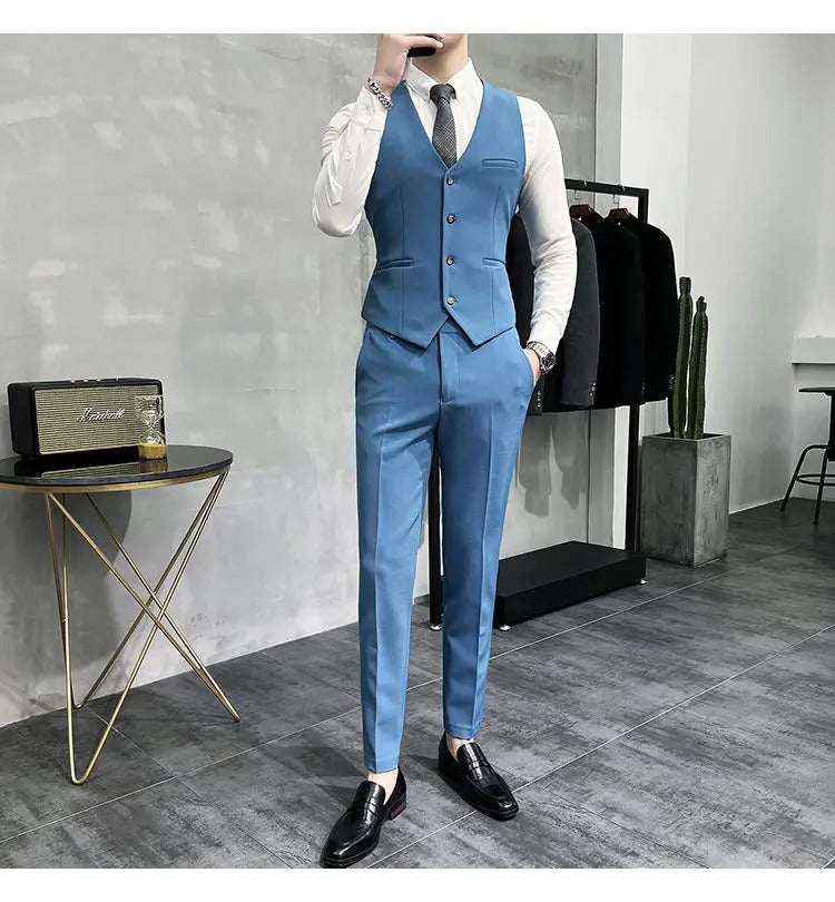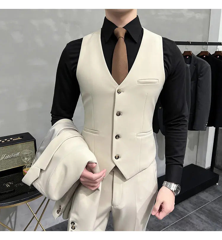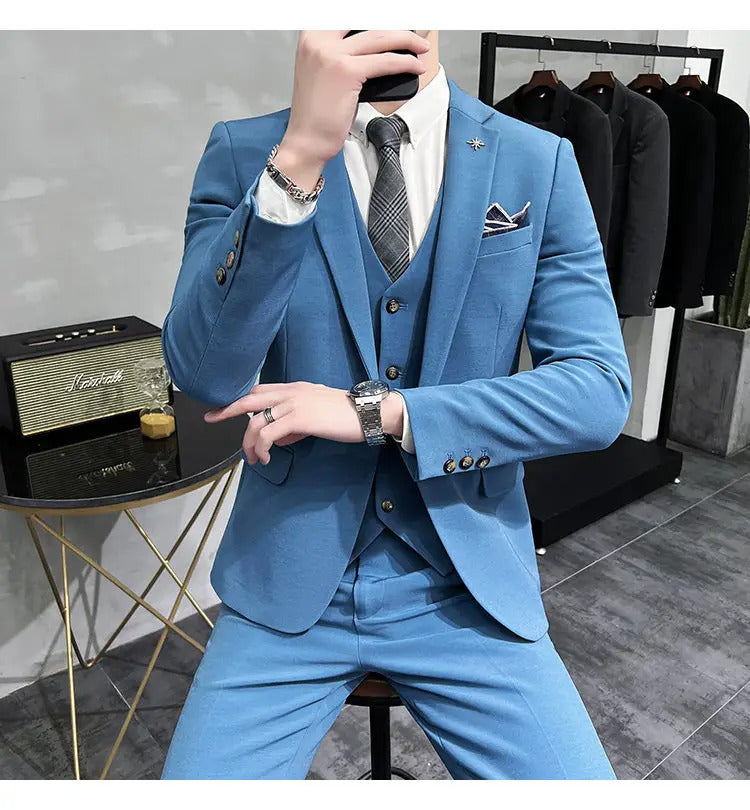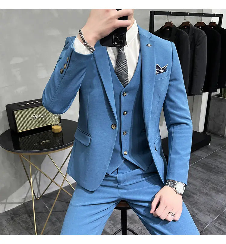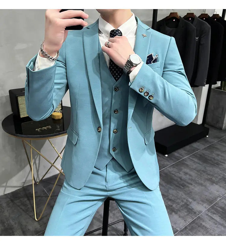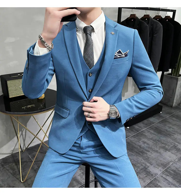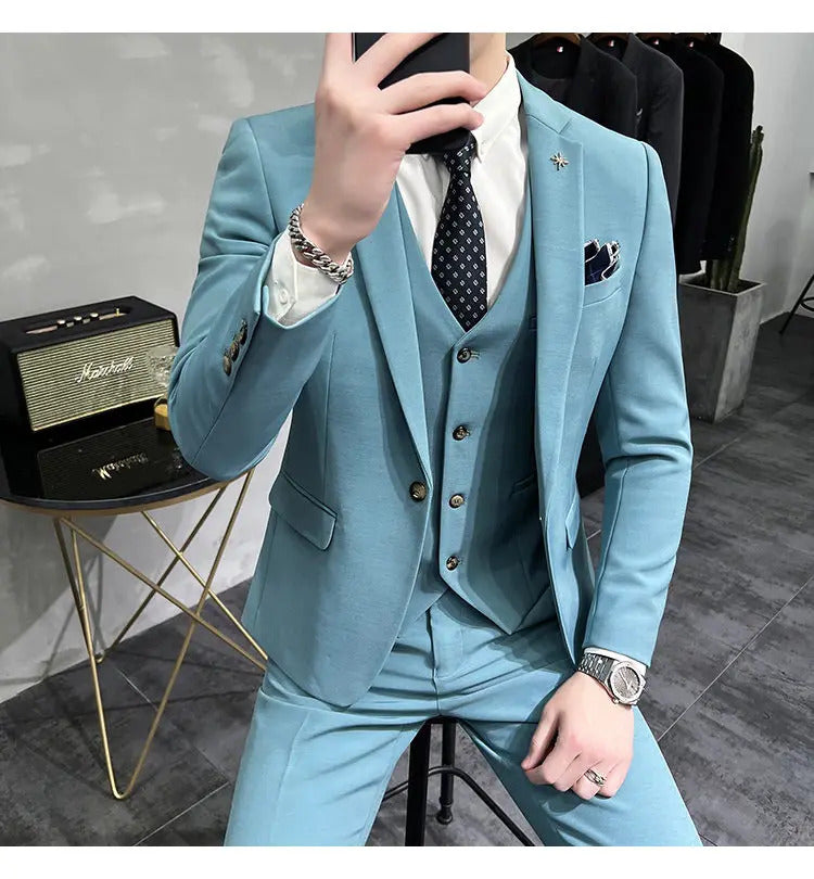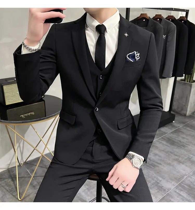礼服男(Jackets+Vest+Pants) High quality Suits For Wedding Men Set Blazers Elegant Formal 3 Pieces Full Classic Business Tuxedo 4XL-M