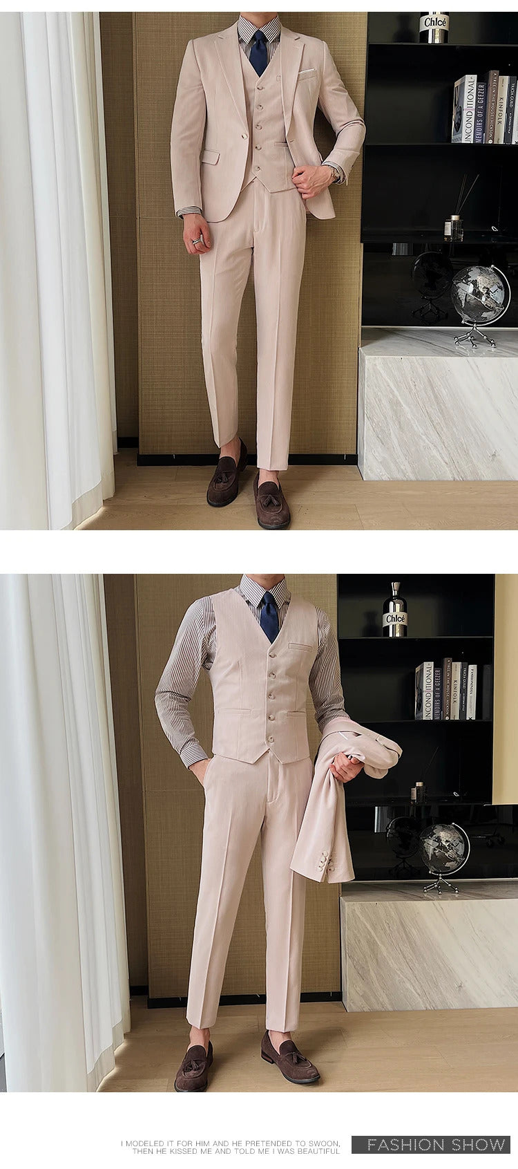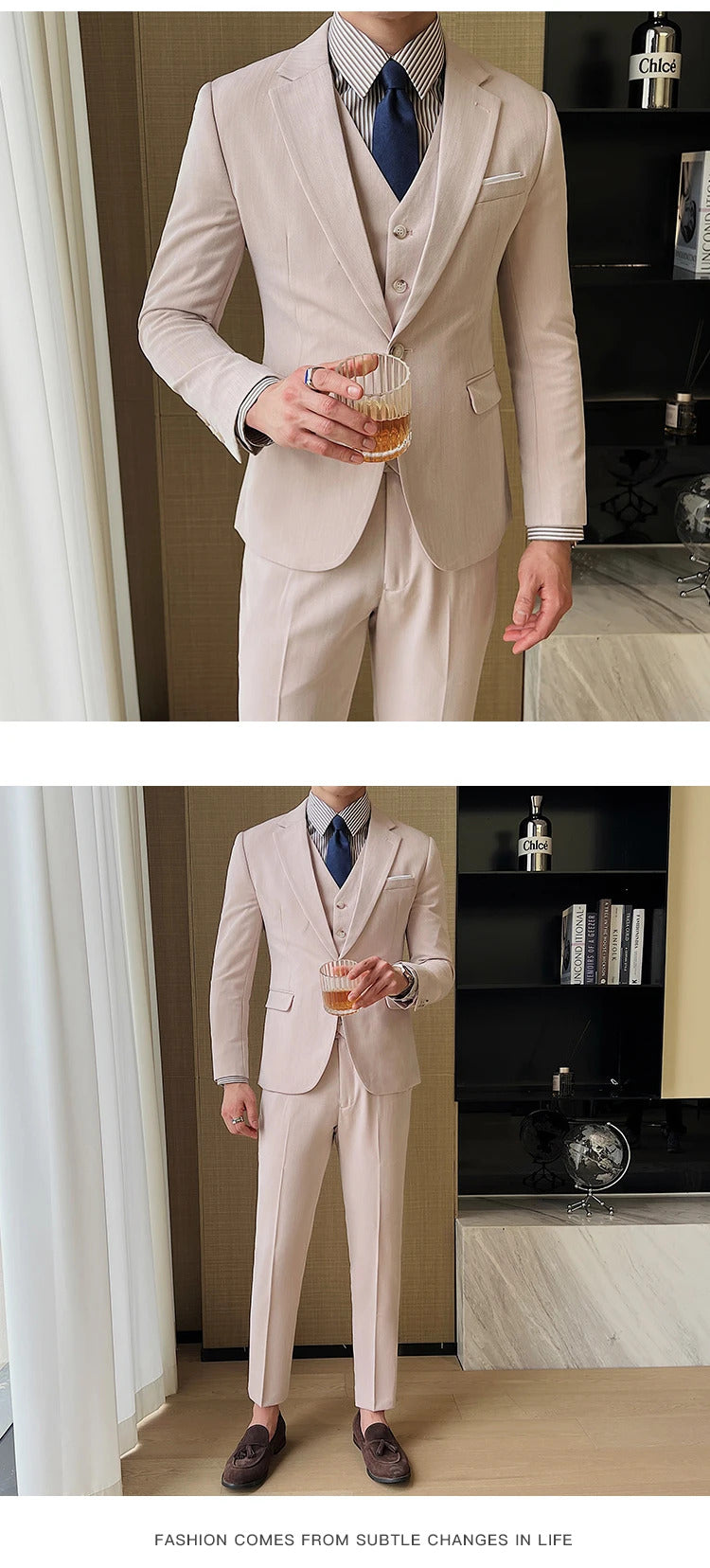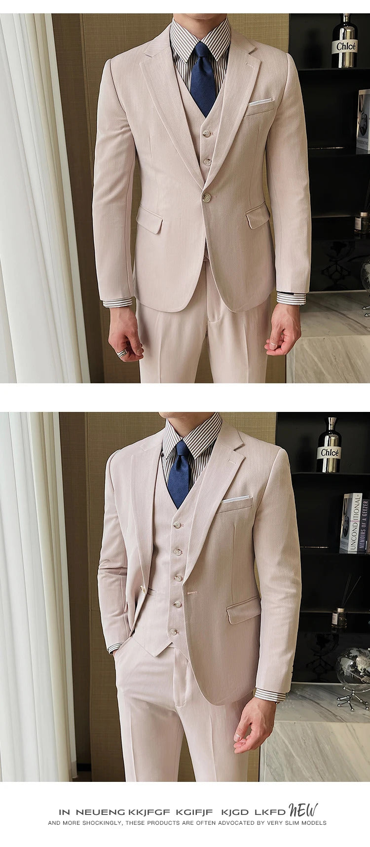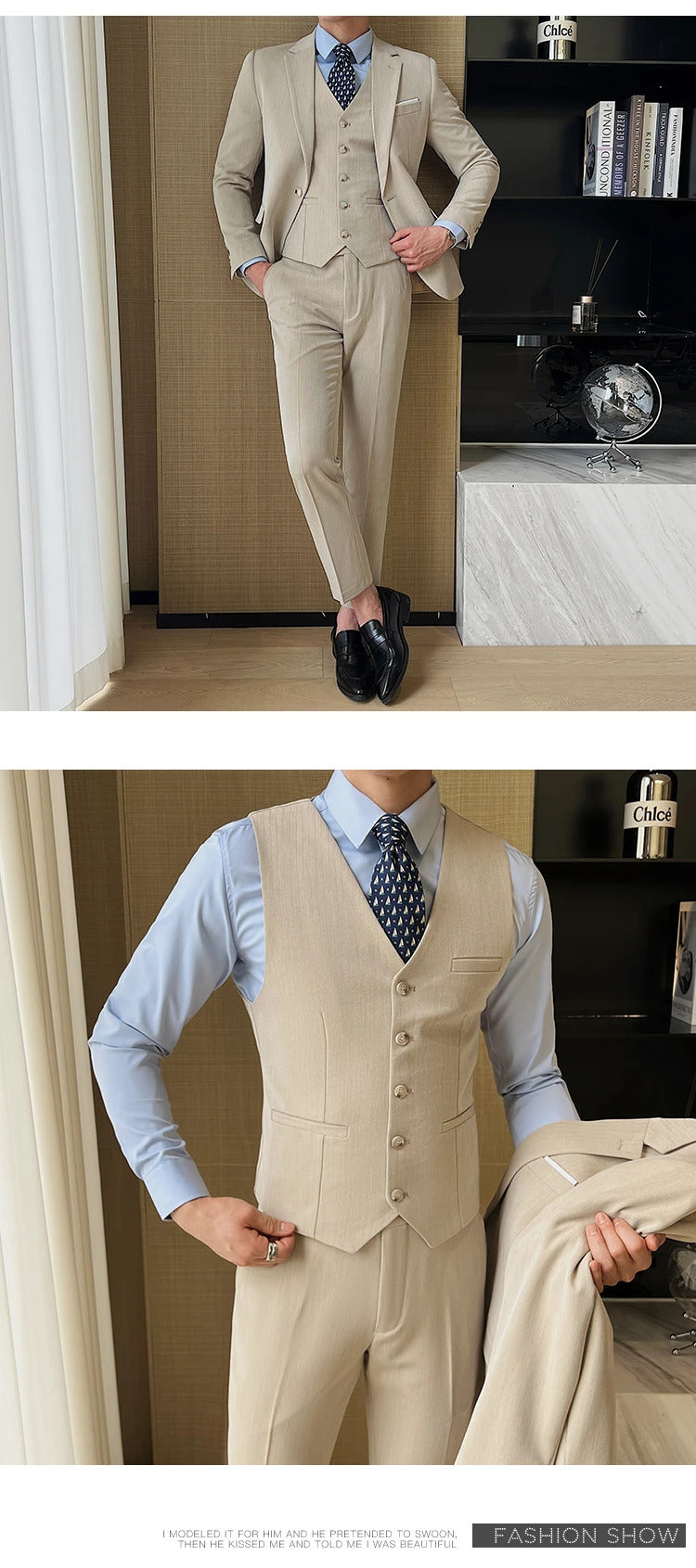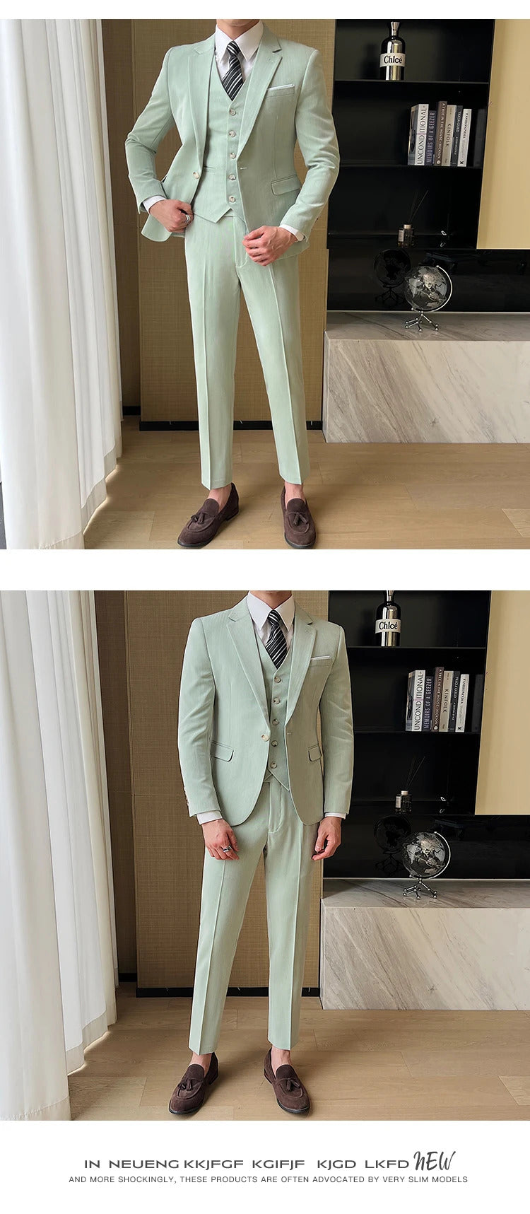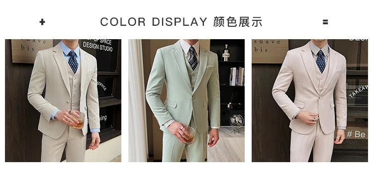 礼服男(Jackets+Vest+Pants) Solid Color High Quality Tuxedo Mens Formal Business Suits 3Pcs Set Groom Wedding Social Show Dress 4XL