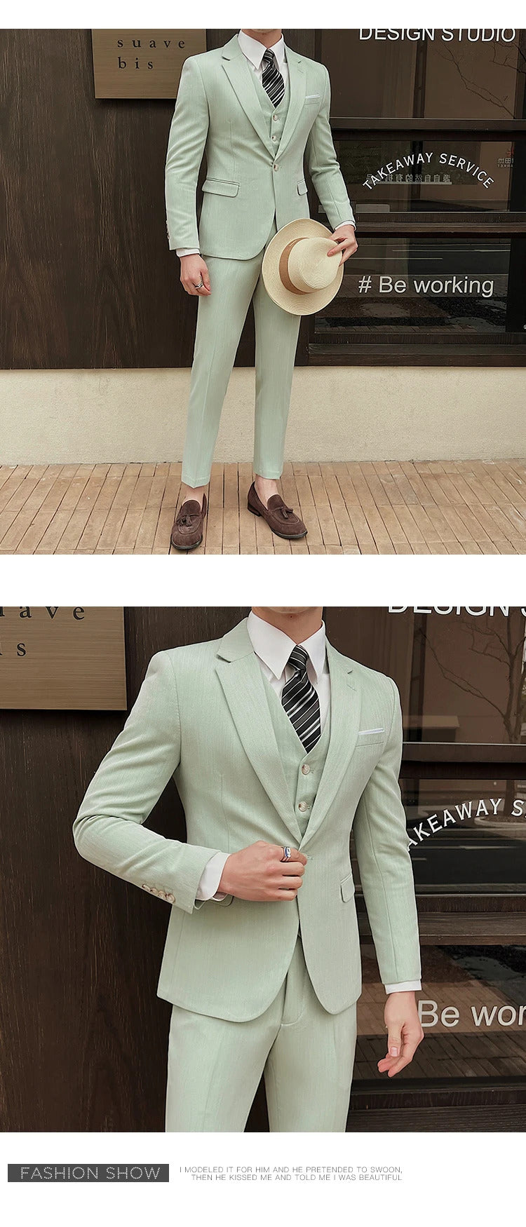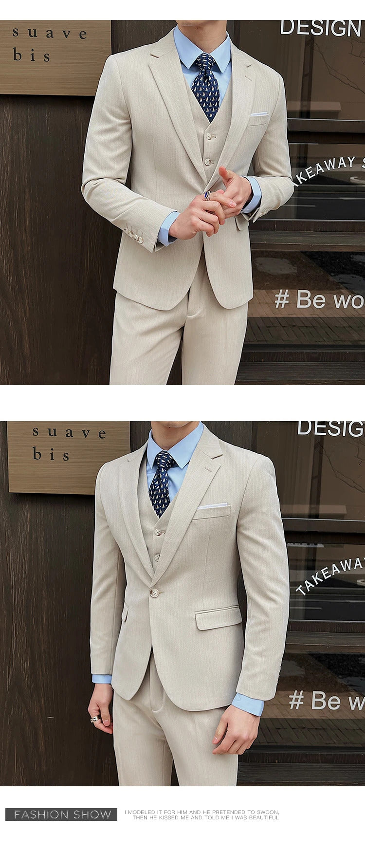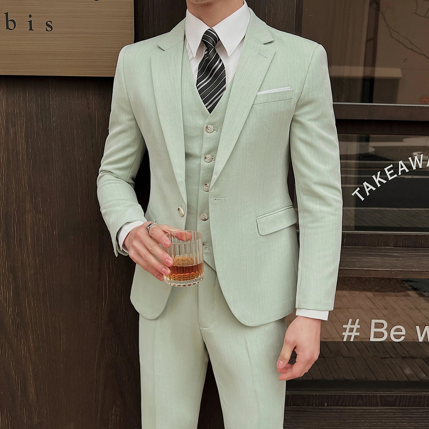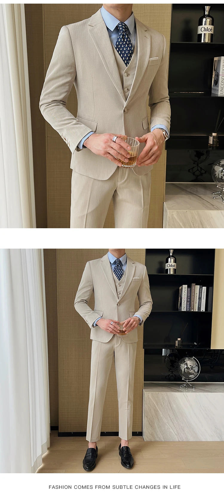 礼服男(Jackets+Vest+Pants) Solid Color High Quality Tuxedo Mens Formal Business Suits 3Pcs Set Groom Wedding Social Show Dress 4XL