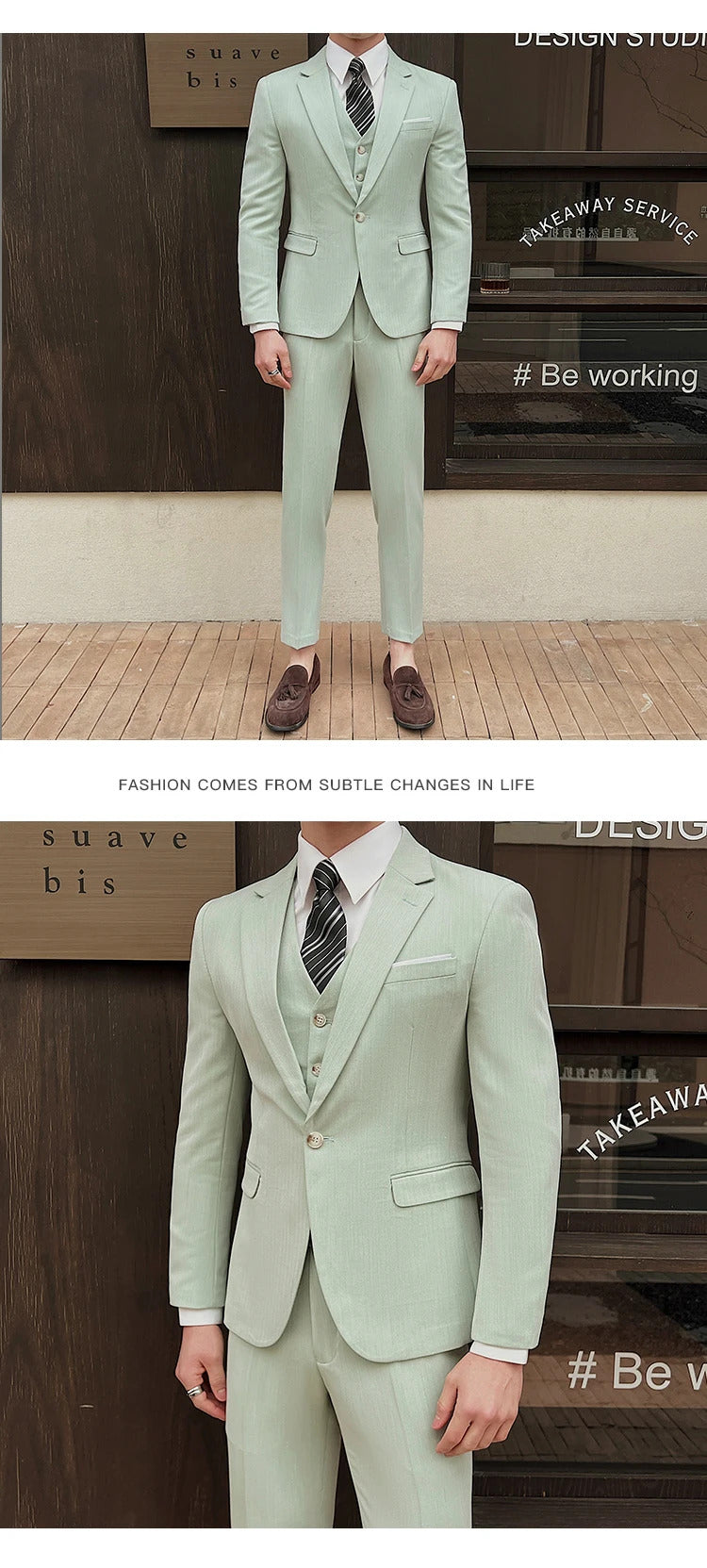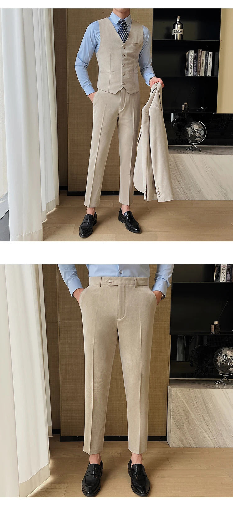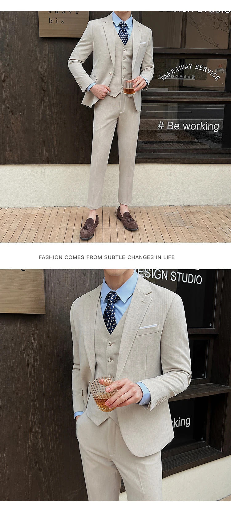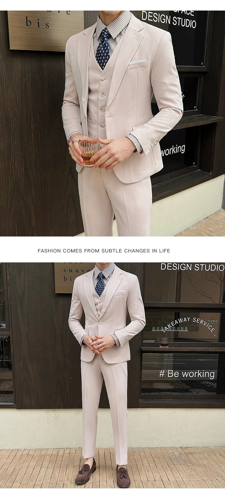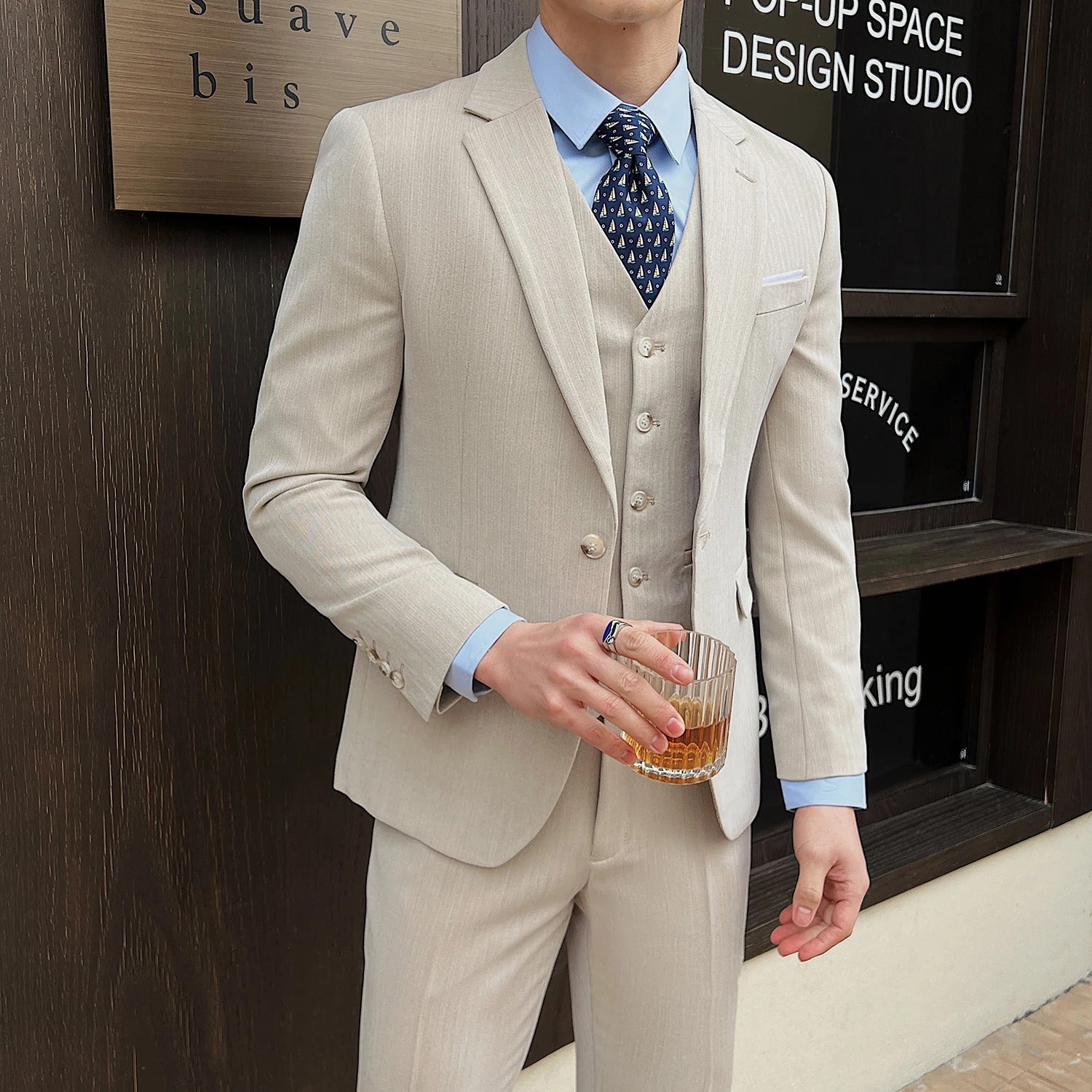 礼服男(Jackets+Vest+Pants) Solid Color High Quality Tuxedo Mens Formal Business Suits 3Pcs Set Groom Wedding Social Show Dress 4XL