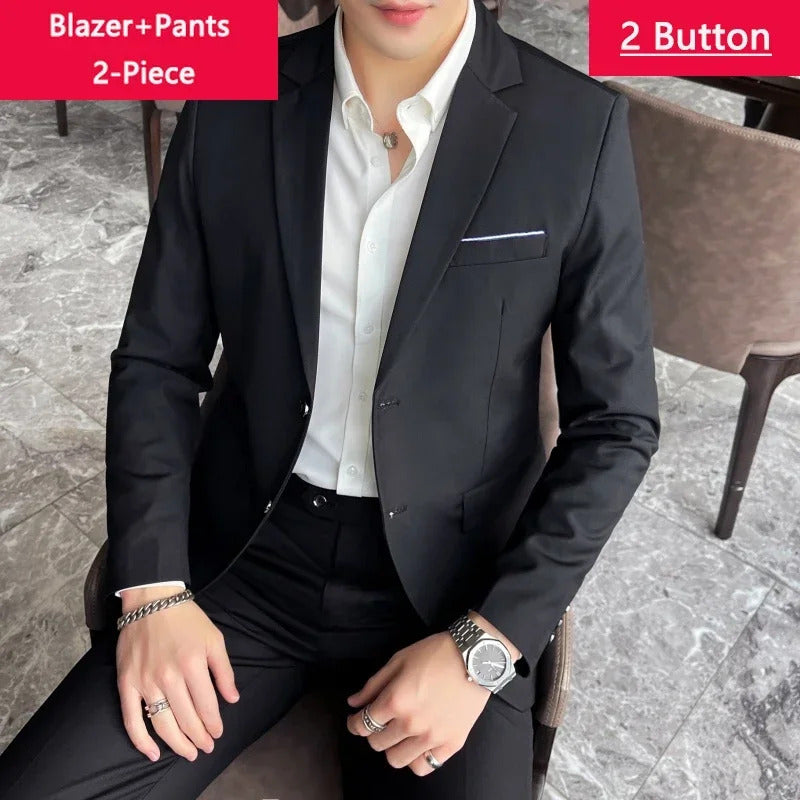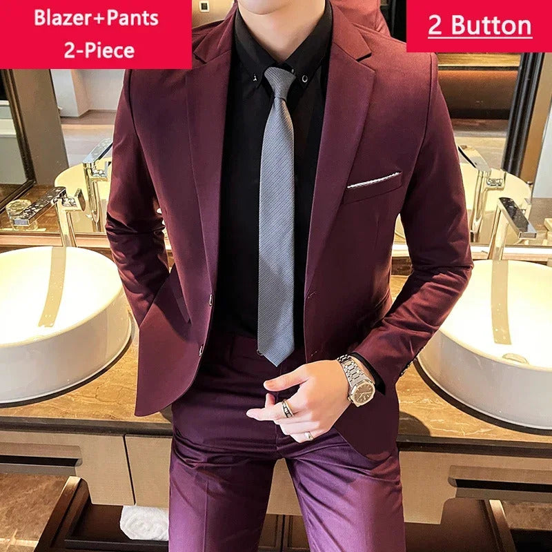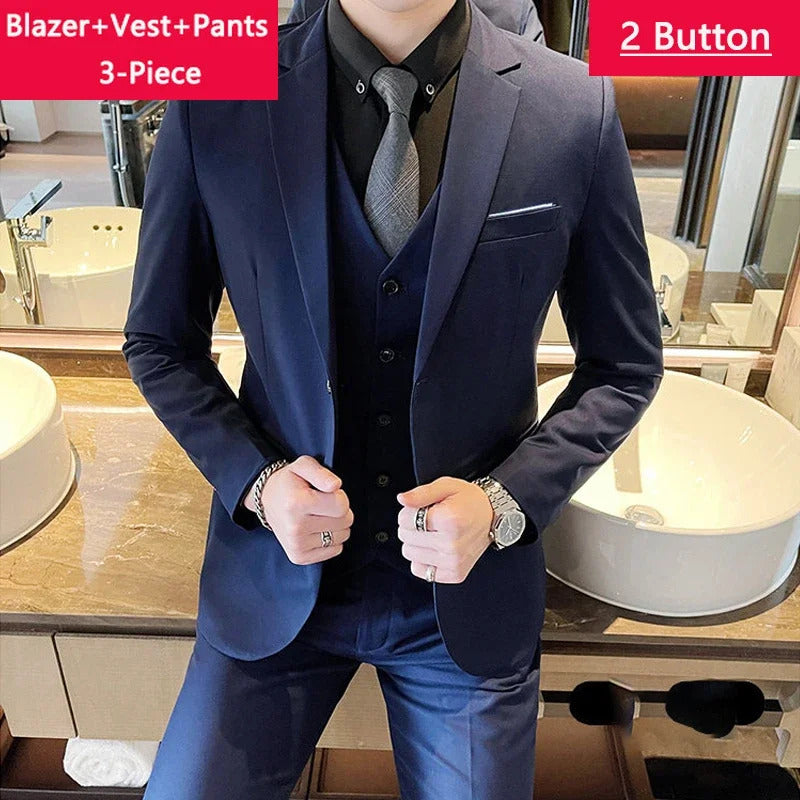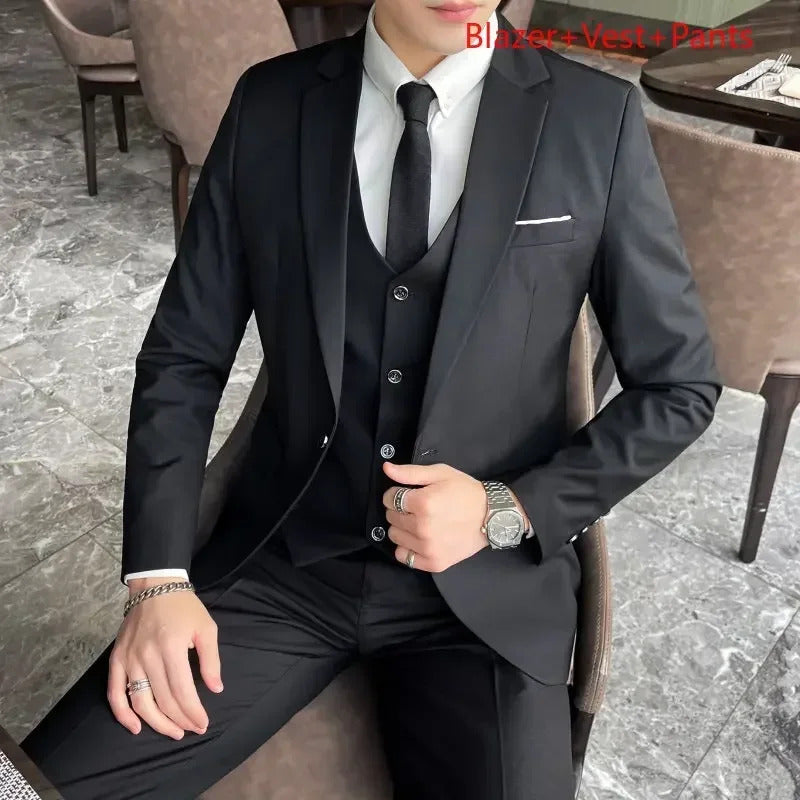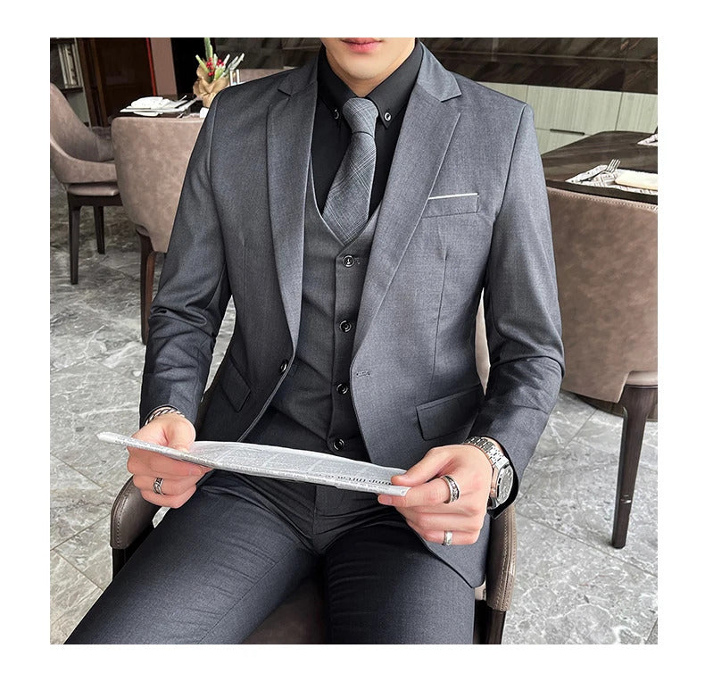 礼服男Jakcet Vest Pants / Boutique Fashion Solid Color Men's Formal Business Office Suit Male Casual Slim Suit Groom Wedding Dress
