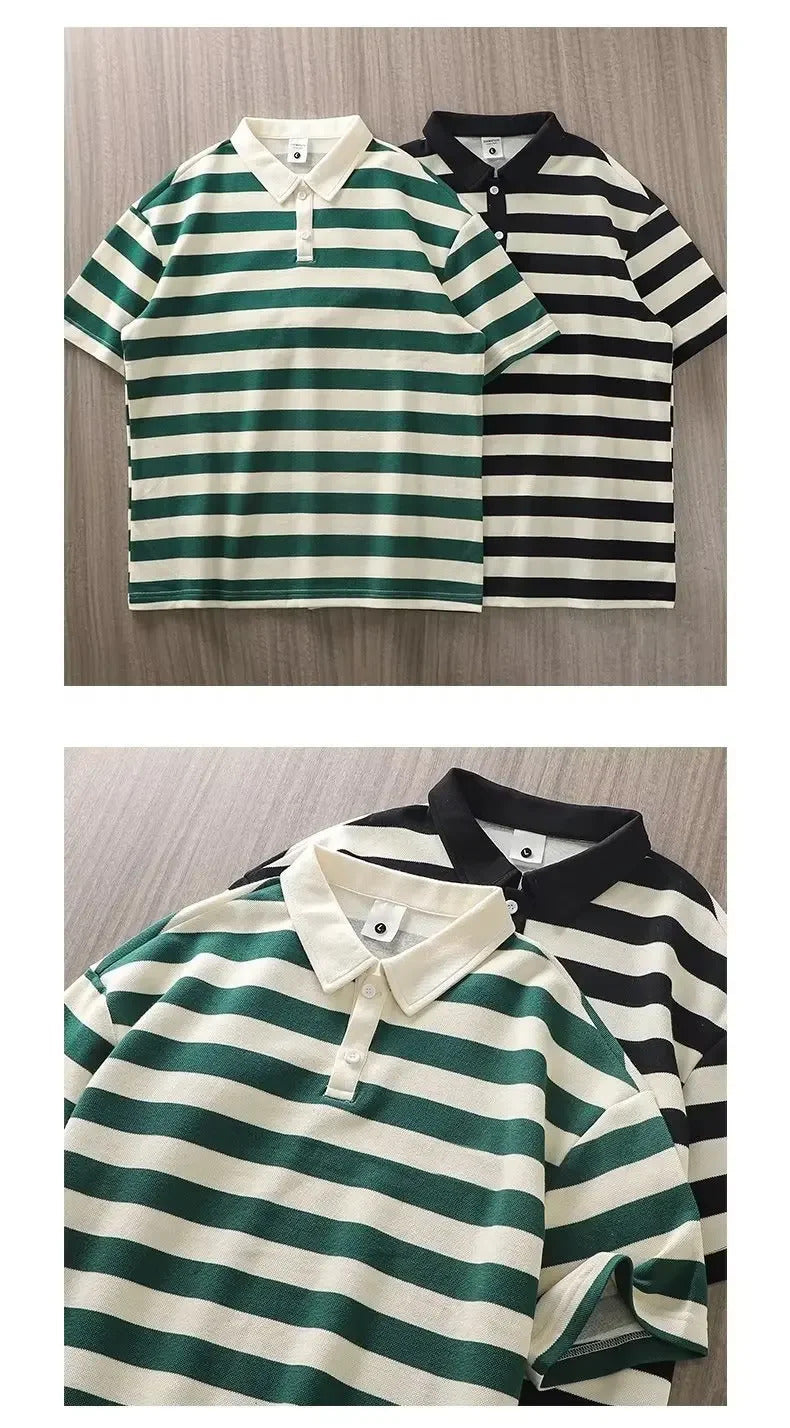 POLO男Japanese Striped Short Sleeve Polo Shirt Men Women's 2024 New Summer Heavy Lapel Casual Half Sleeve Men's Top