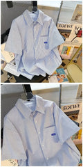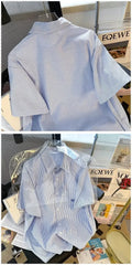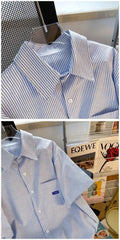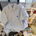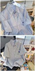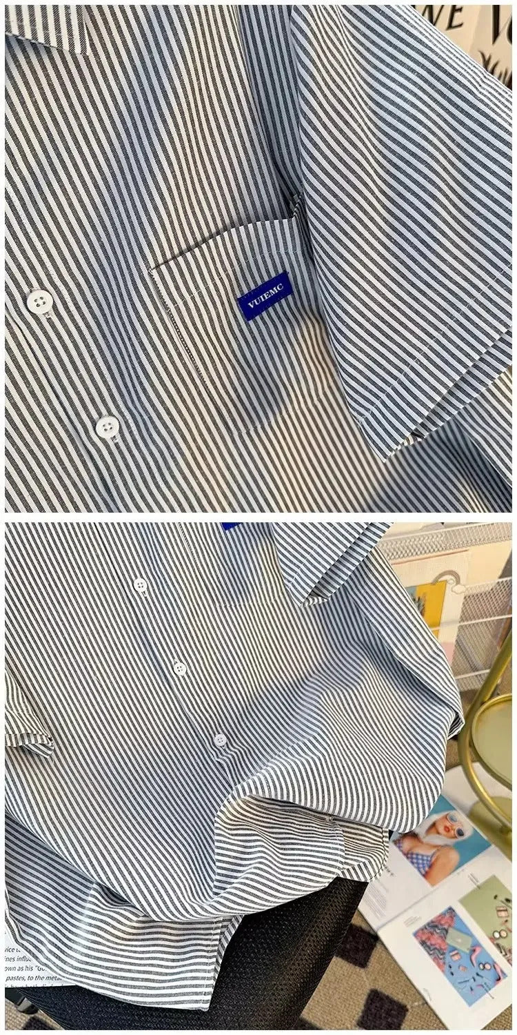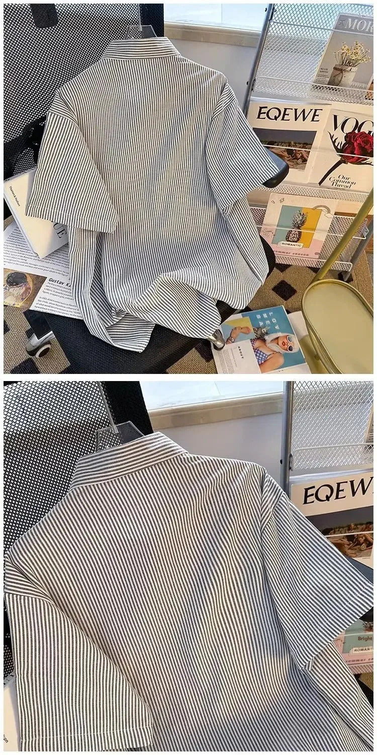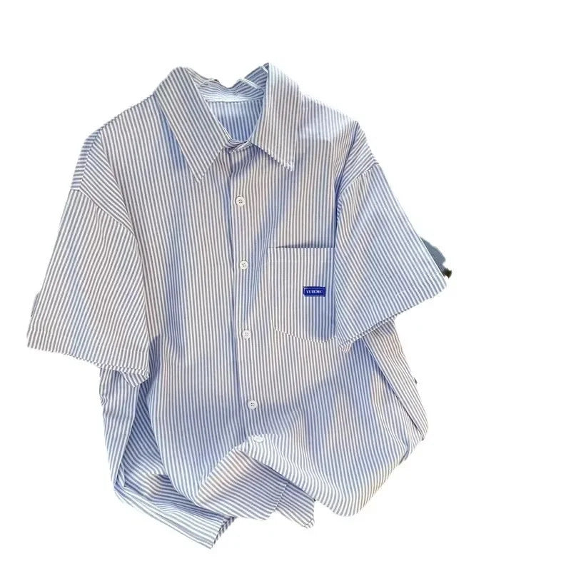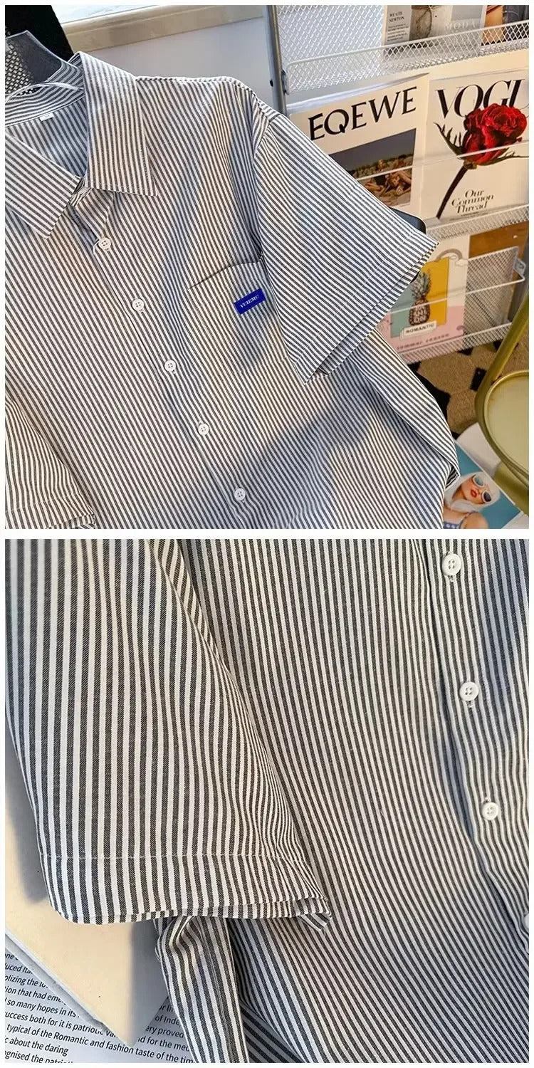 衬衫男Japanese Style Fresh Striped Short Sleeve Shirt Men's Summer Thin Loose-Fit Cardigan Outerwear Casual Scene Nonspecific Material