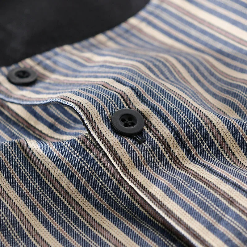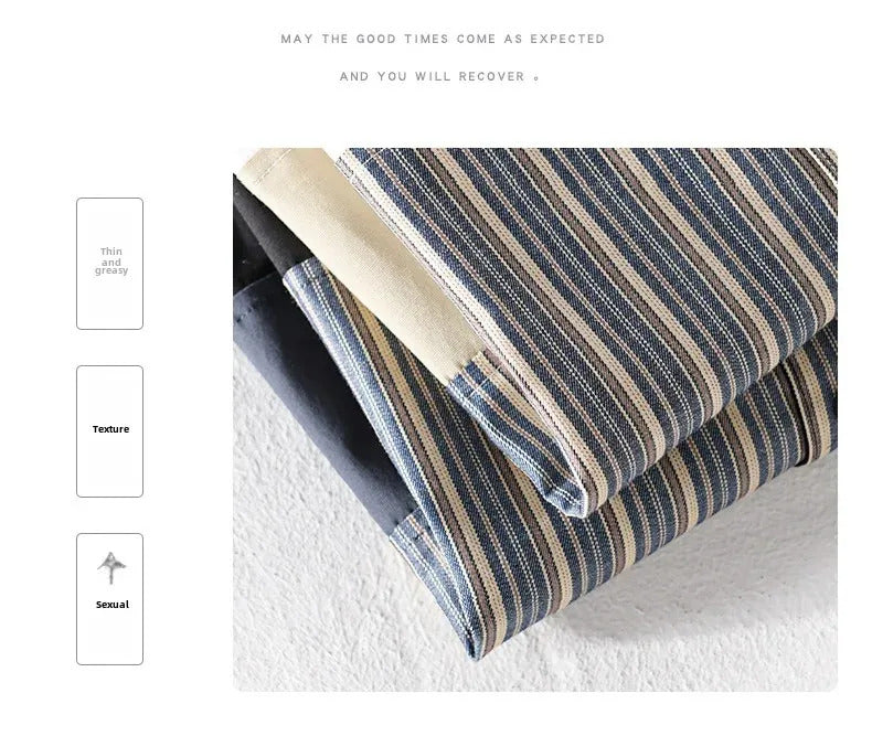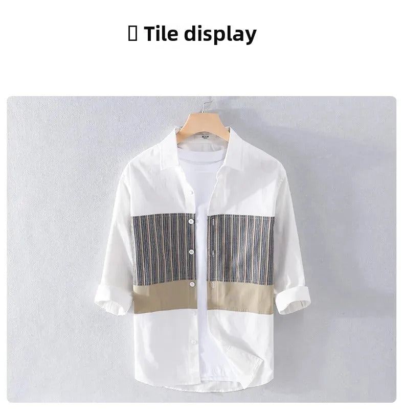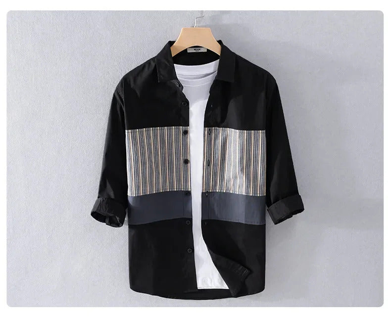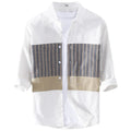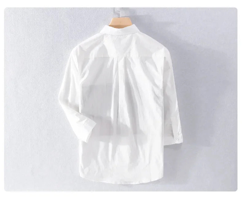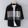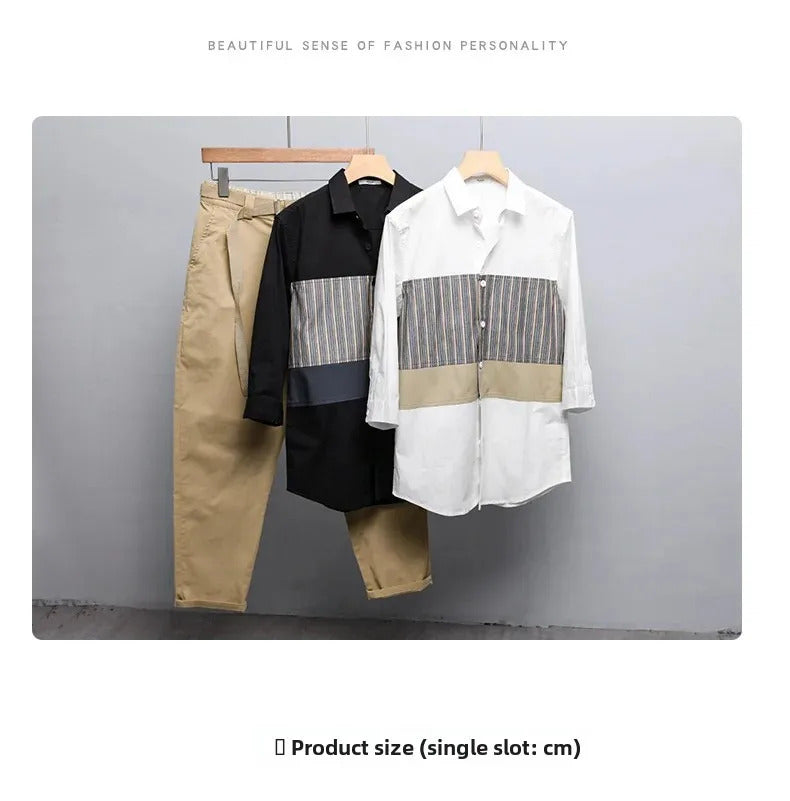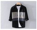 衬衫男Japanese Style Simple Men's 3/4 Sleeve Shirt Trendy Comfortable Loose-Fit Striped Cotton Casual Shirt 9745