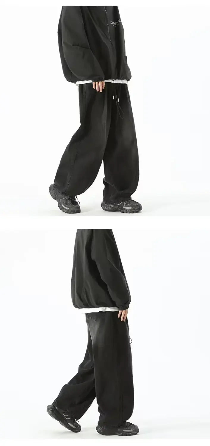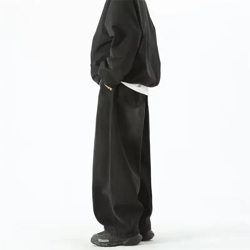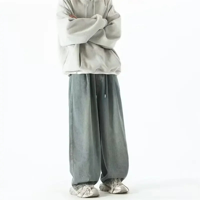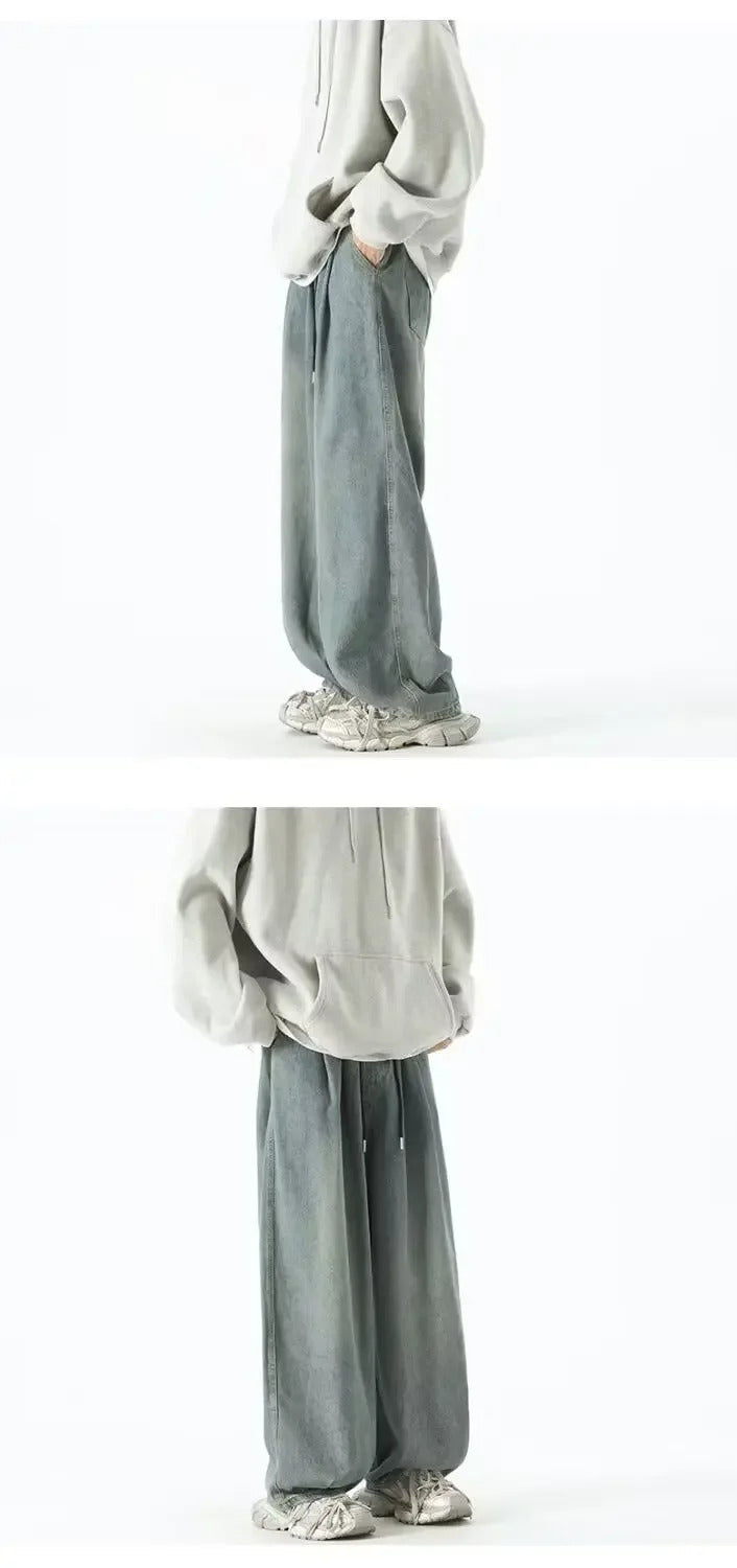 牛仔裤男Japanese Style Wide-Leg Jeans Men's Summer Trendy Brand Washing Distressed Pants Ins Loose-Fit Draped Casual Dragging Pants