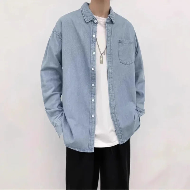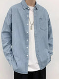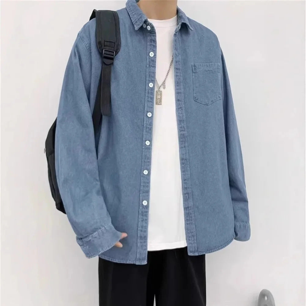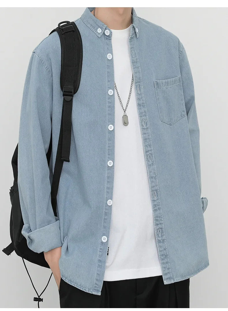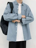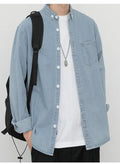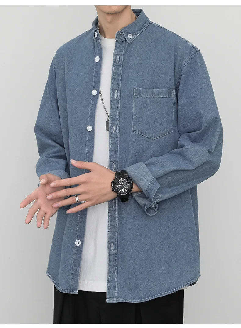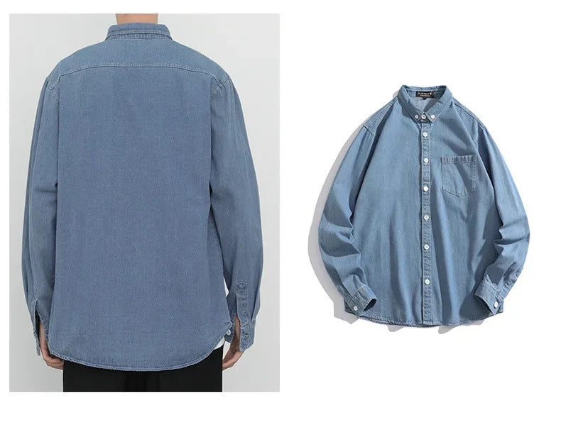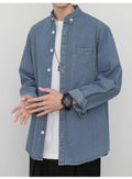 衬衫男Japanese Vintage Denim Shirt Men's Long Sleeve Loose Fit Casual Clothing Working Uniform Spring Autumn Versatile Jacket