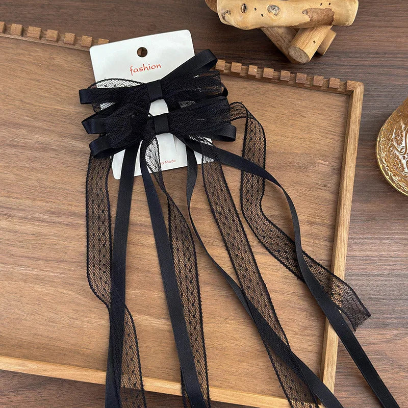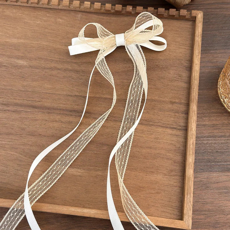 发饰Korean Lace Bow Hair Clip Fashion Long Ribbon Hairpins Barrettes Headband for Women Girls Sweet Hair Accessories Wedding Jewelry