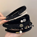 发饰Korean Luxury Zircon Rhinestone Headbands for Women Female Black Velvet Pearl Hairbands Makeup Hair Hoops Hair Accessories