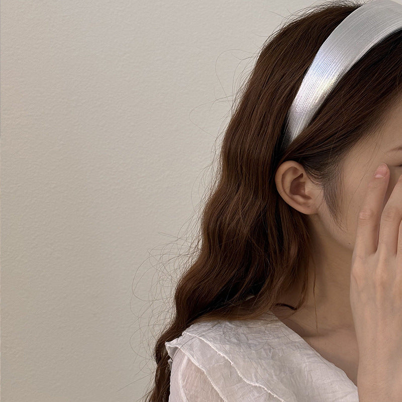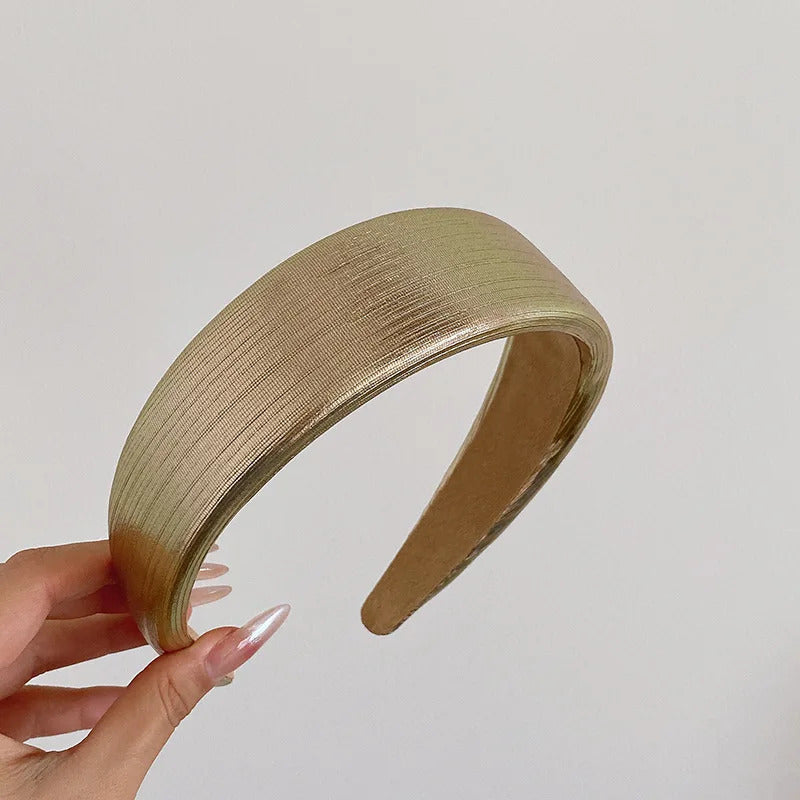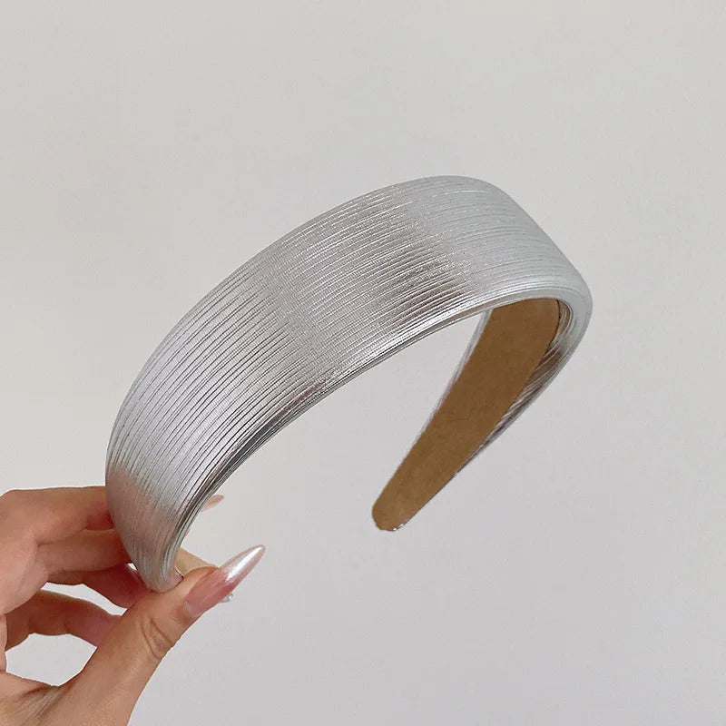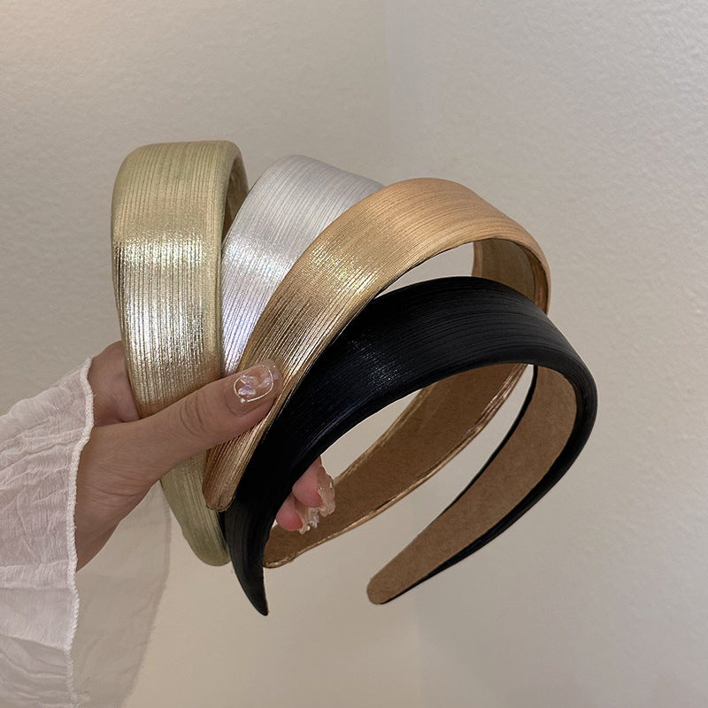 发饰Korean Style Wide Leather Hairbands Shiny Gold Silver Pu Headbands Fashion Plain Sponge Hair Hoop Women Hair Clip Retro Headwear